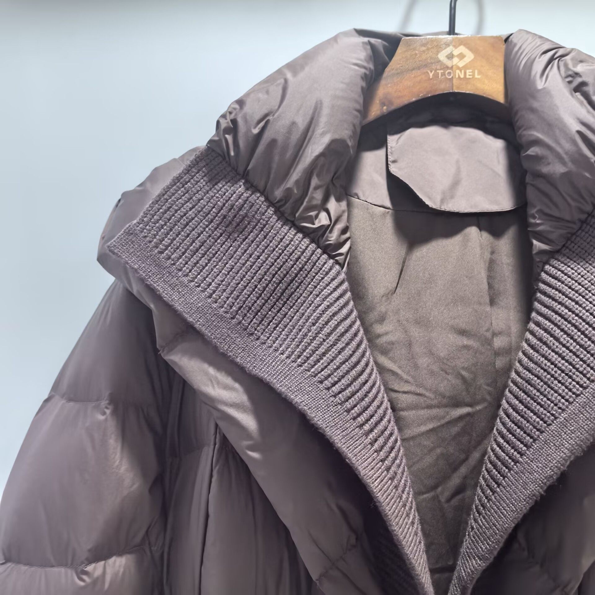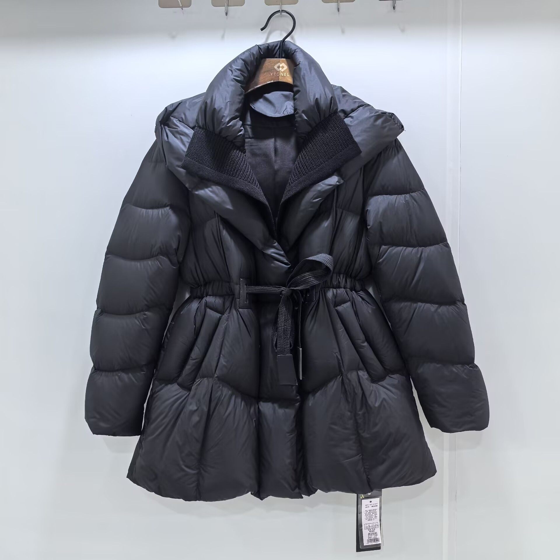 2025女款 DDF DY3917休闲连帽翻领抽绳系带中长保暖鹅绒服外套冬装