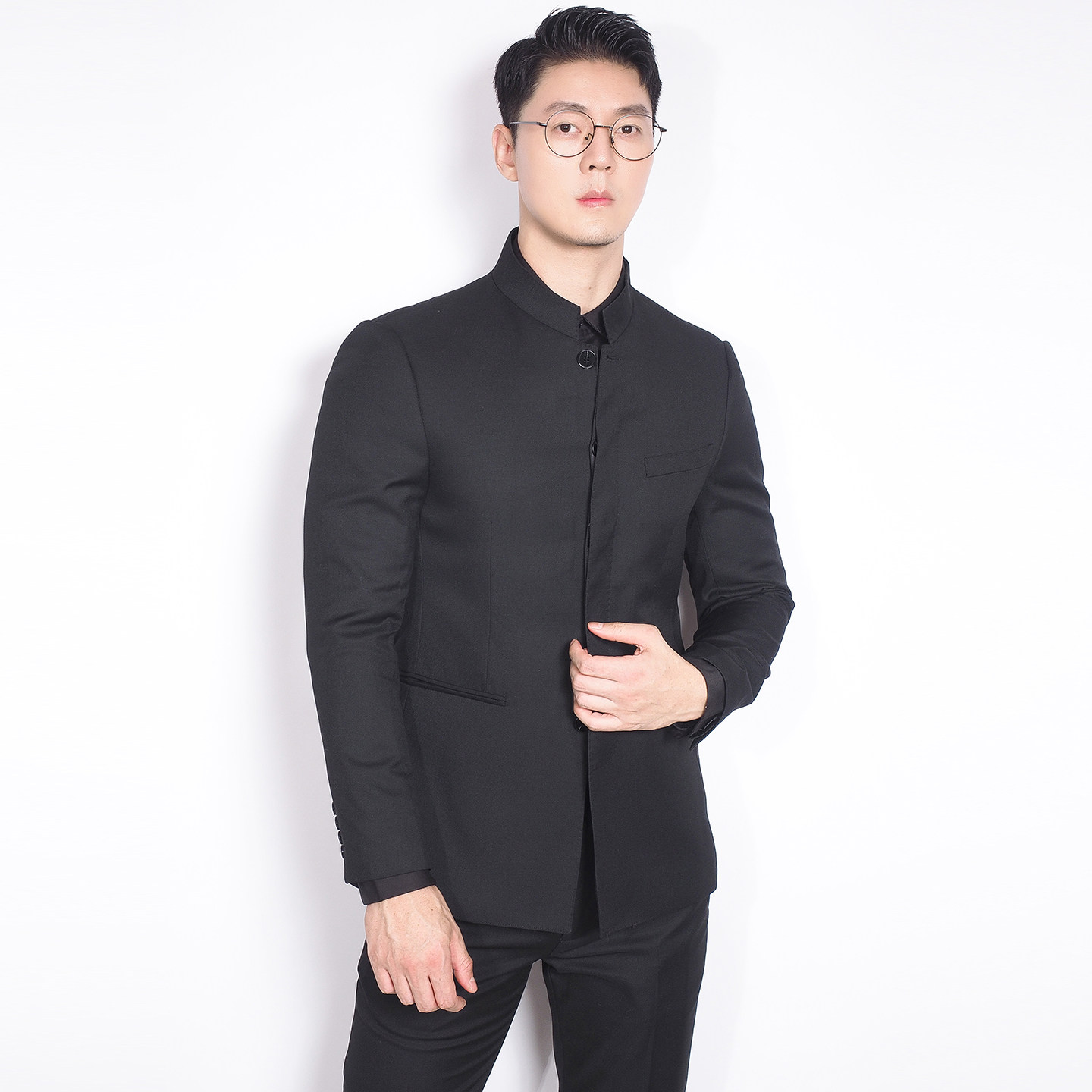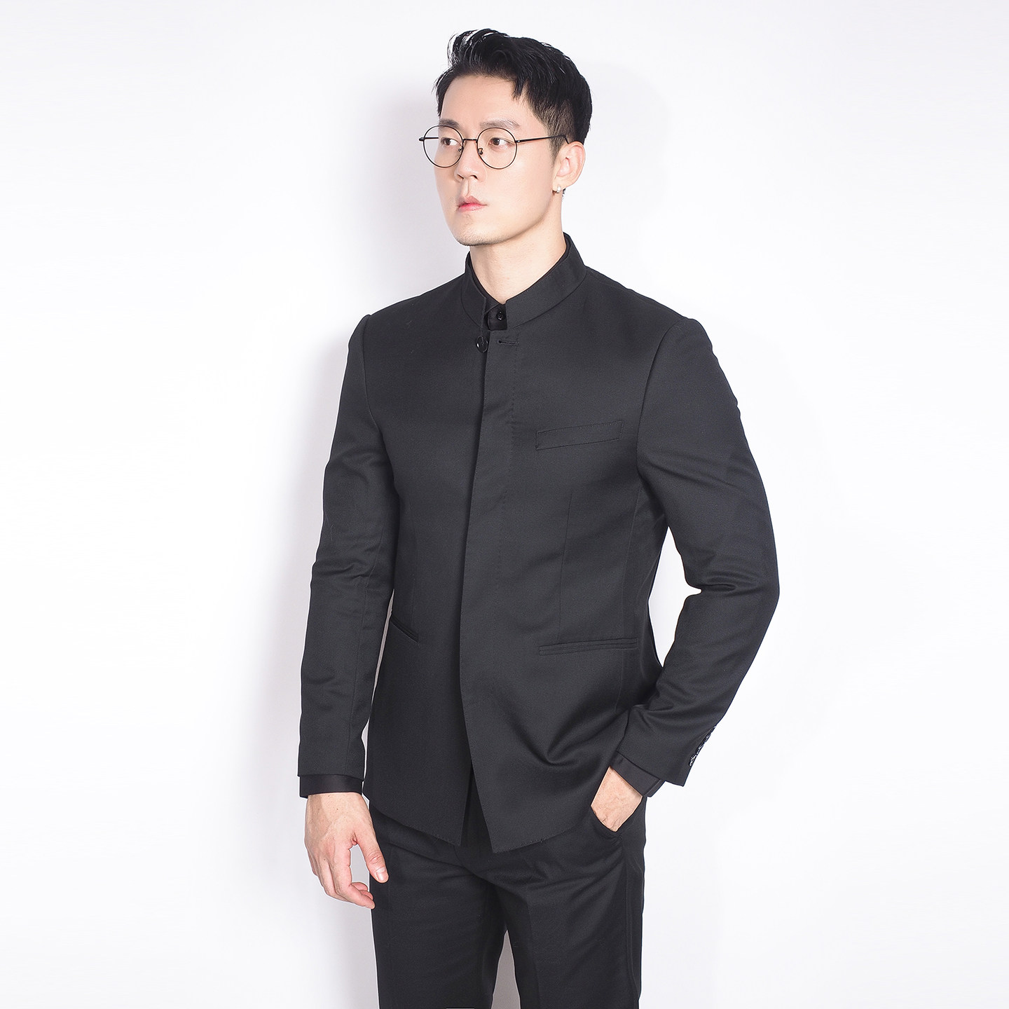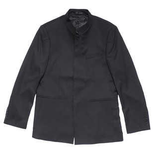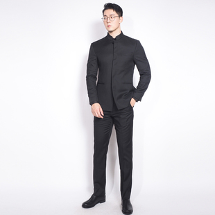 单排暗扣结婚礼服国风时尚 立领中山装 黑色高端西服 新中式 川泽男装