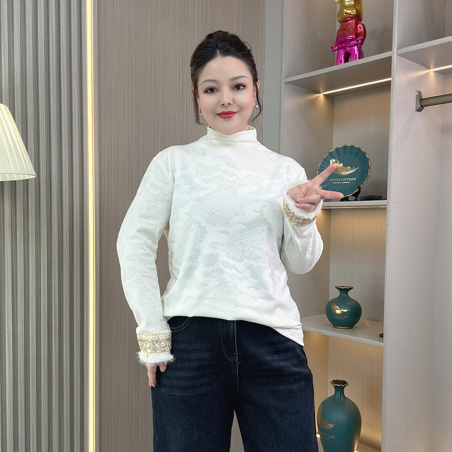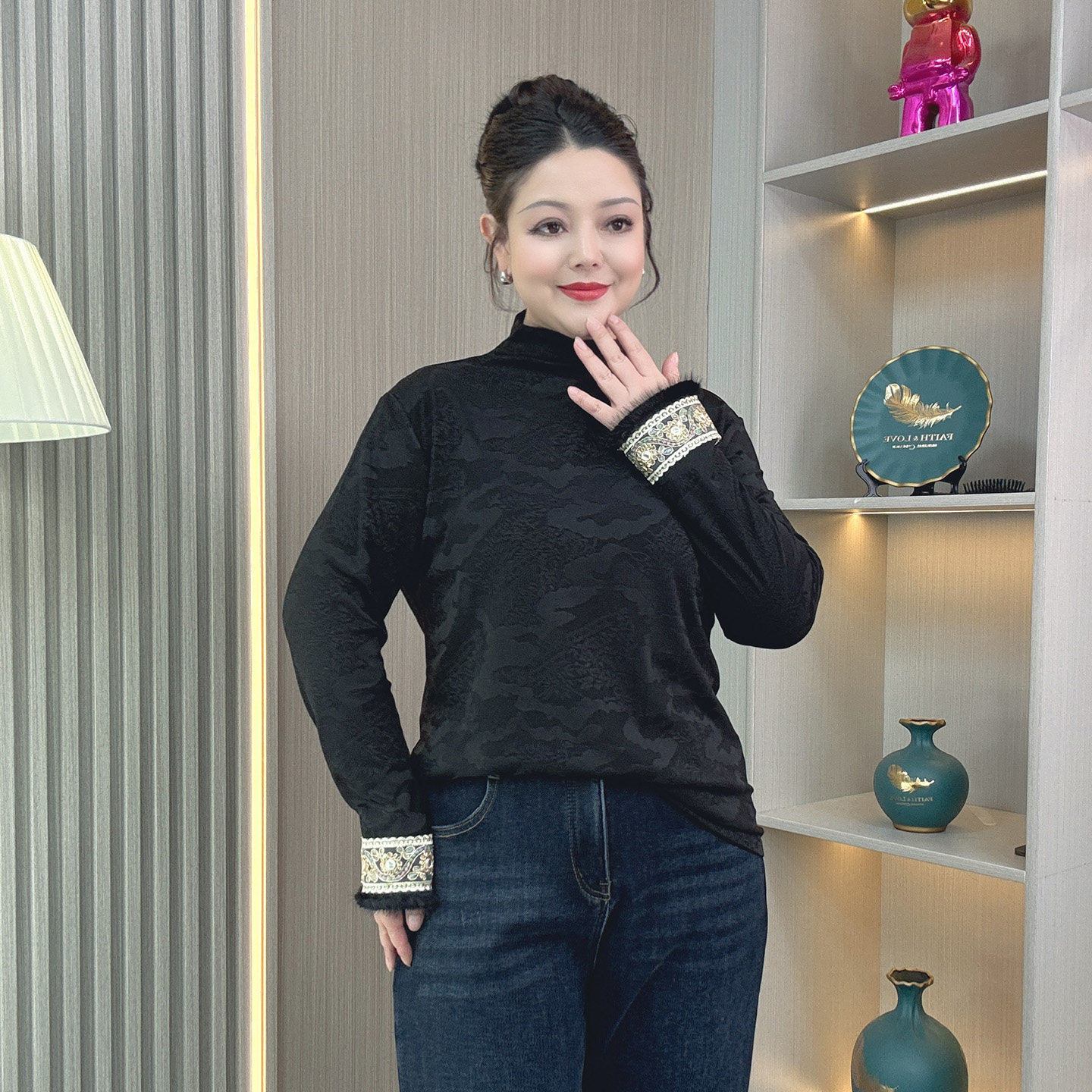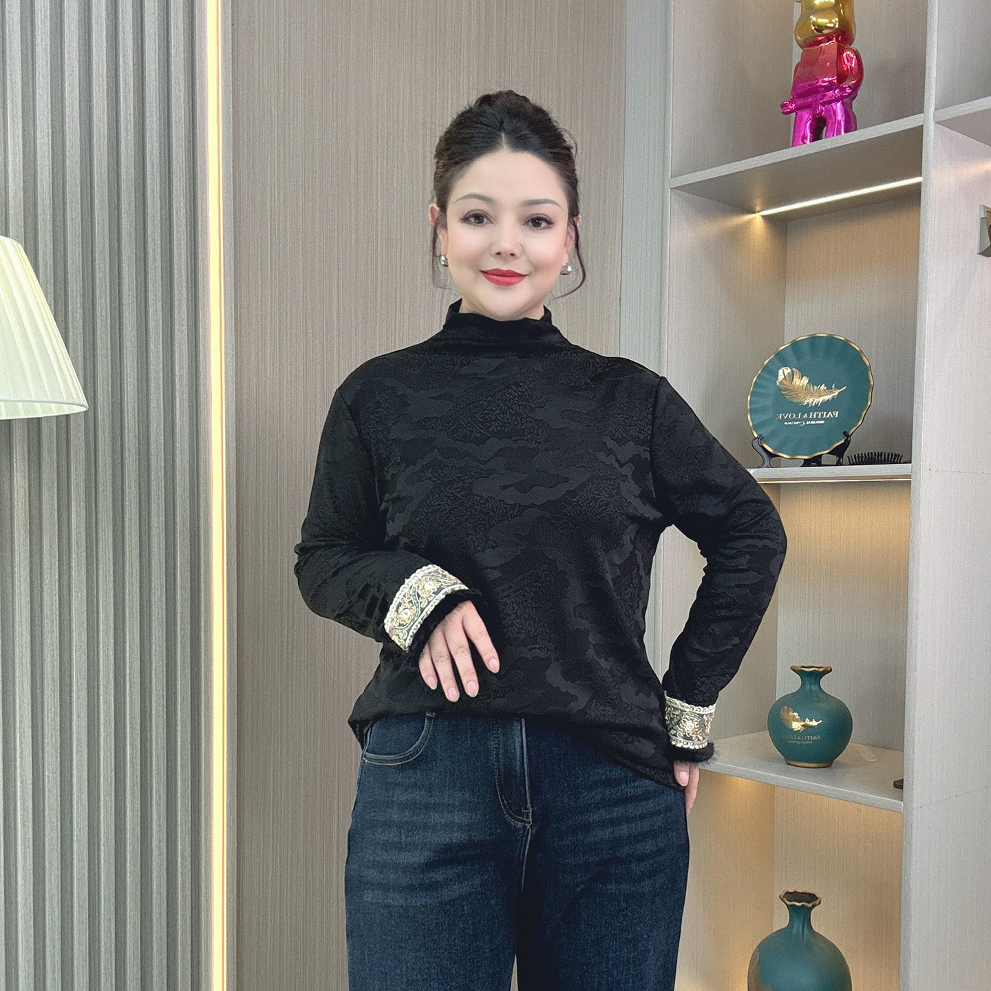 软糯弹力舒适百搭小衫 女装 内搭 木子理想大码 胖mm秋冬堆堆领打底衫
