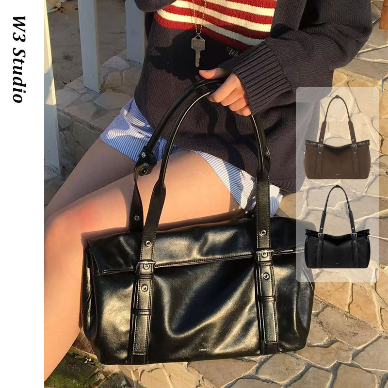 韩国小众stand棕色托特包许允真ins百搭大容量通勤腋下单肩包女