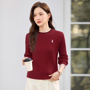 洋气可内搭红色上衣打底衫 圆领毛衣女针织衫 女装 秋冬爆款 2025新款