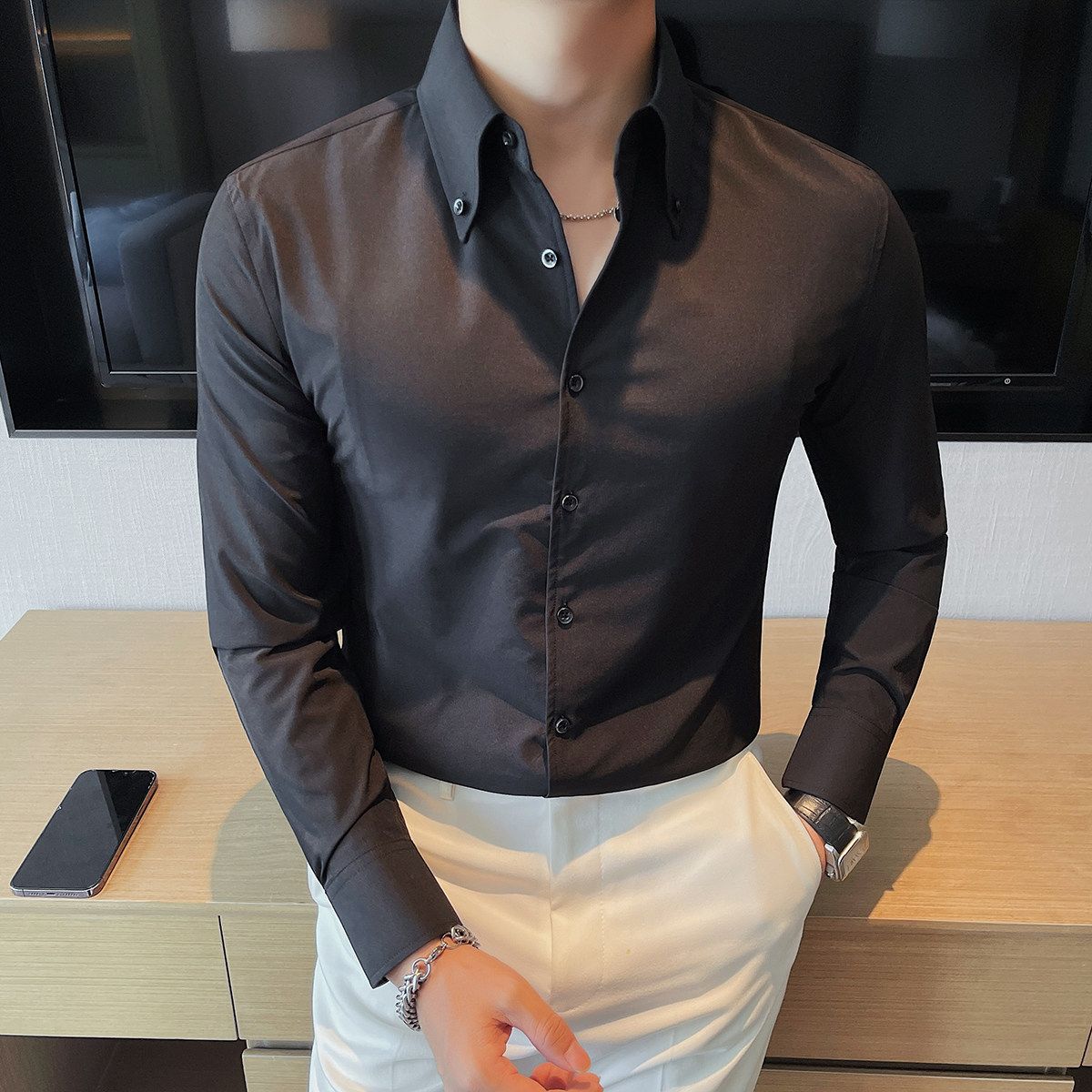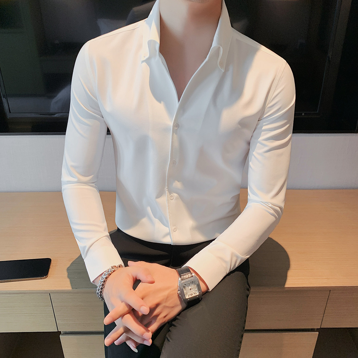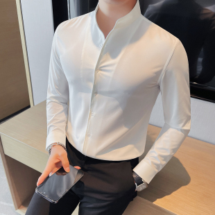 大尖领衬衫 白色衬衣修身 男士 长袖 高端商务休闲正装 高级感痞帅法式