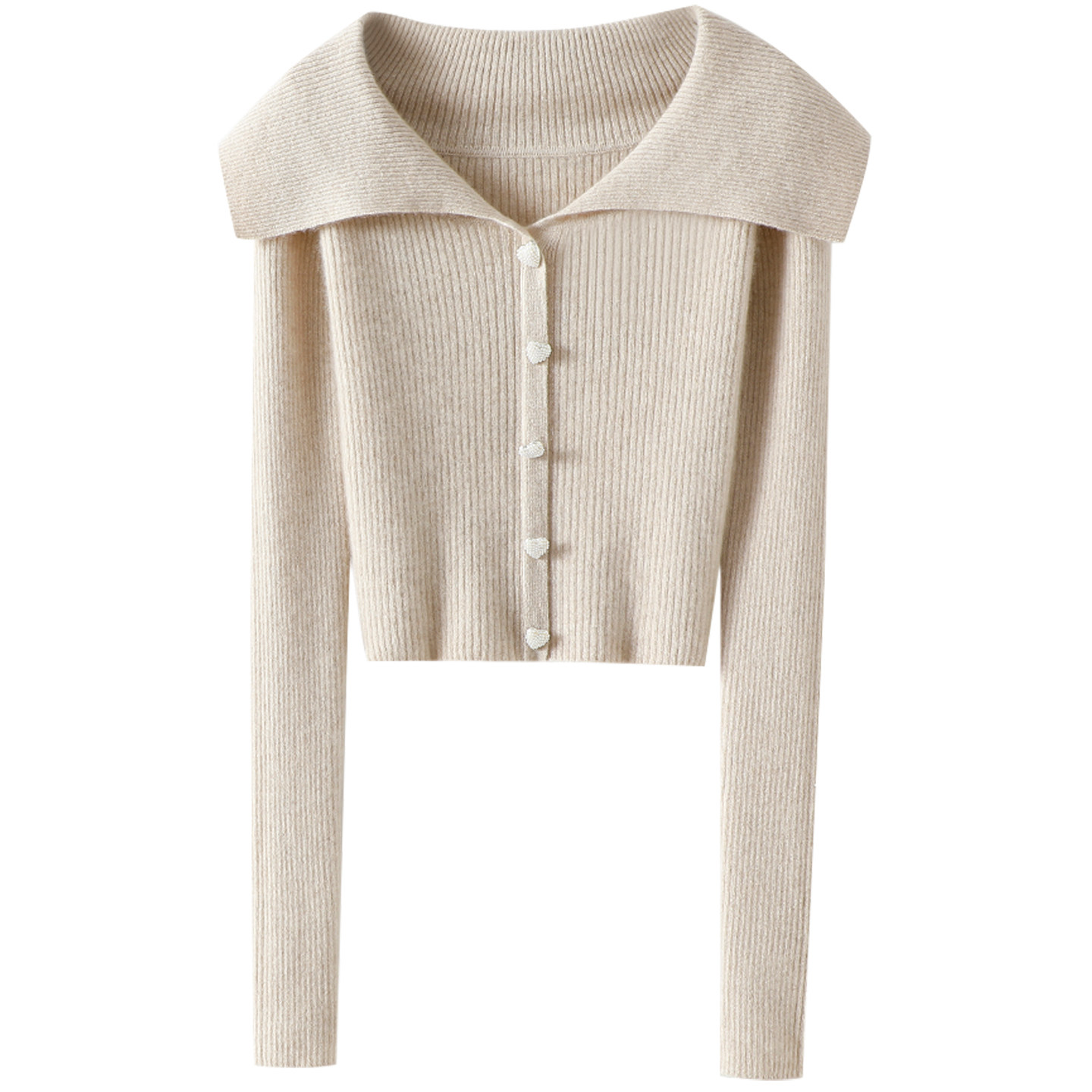 弹力针织外套秋冬 女假开衫 太喜欢了 大翻领珍珠扣100%纯羊绒开衫