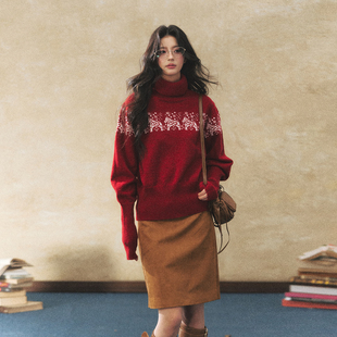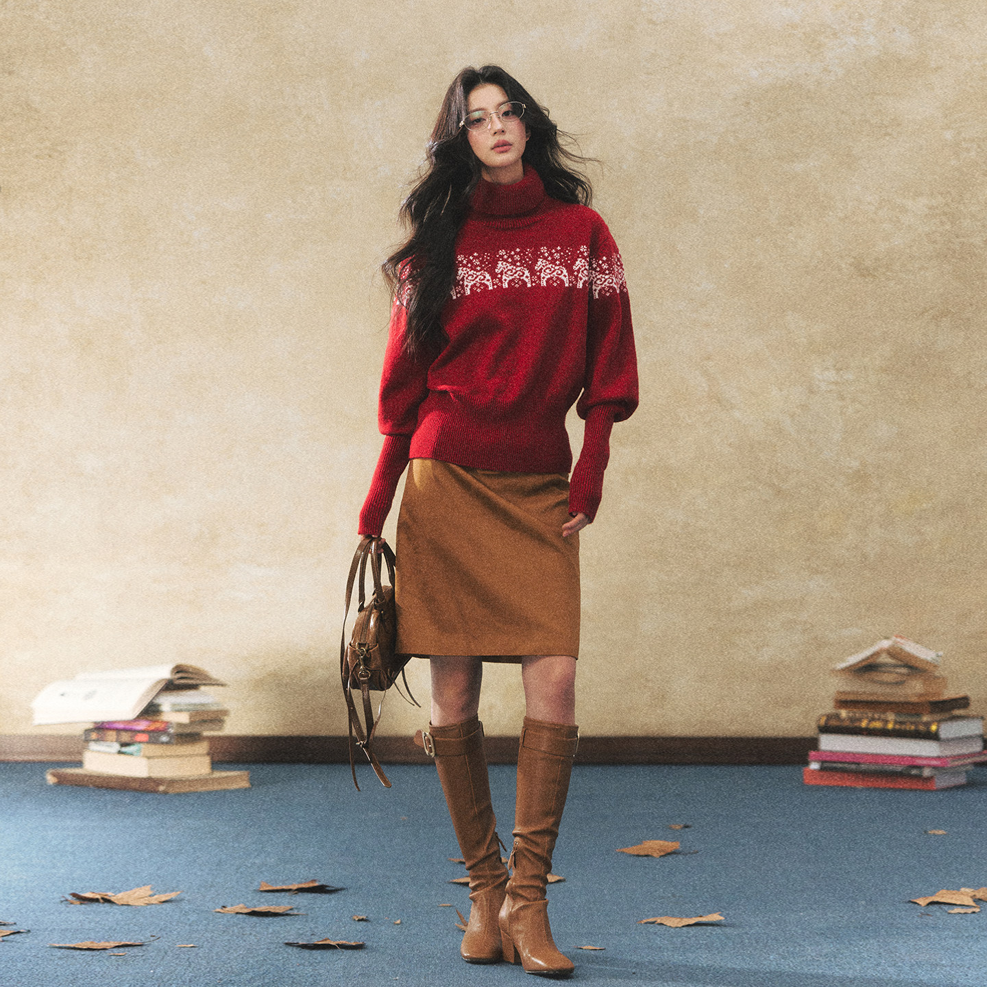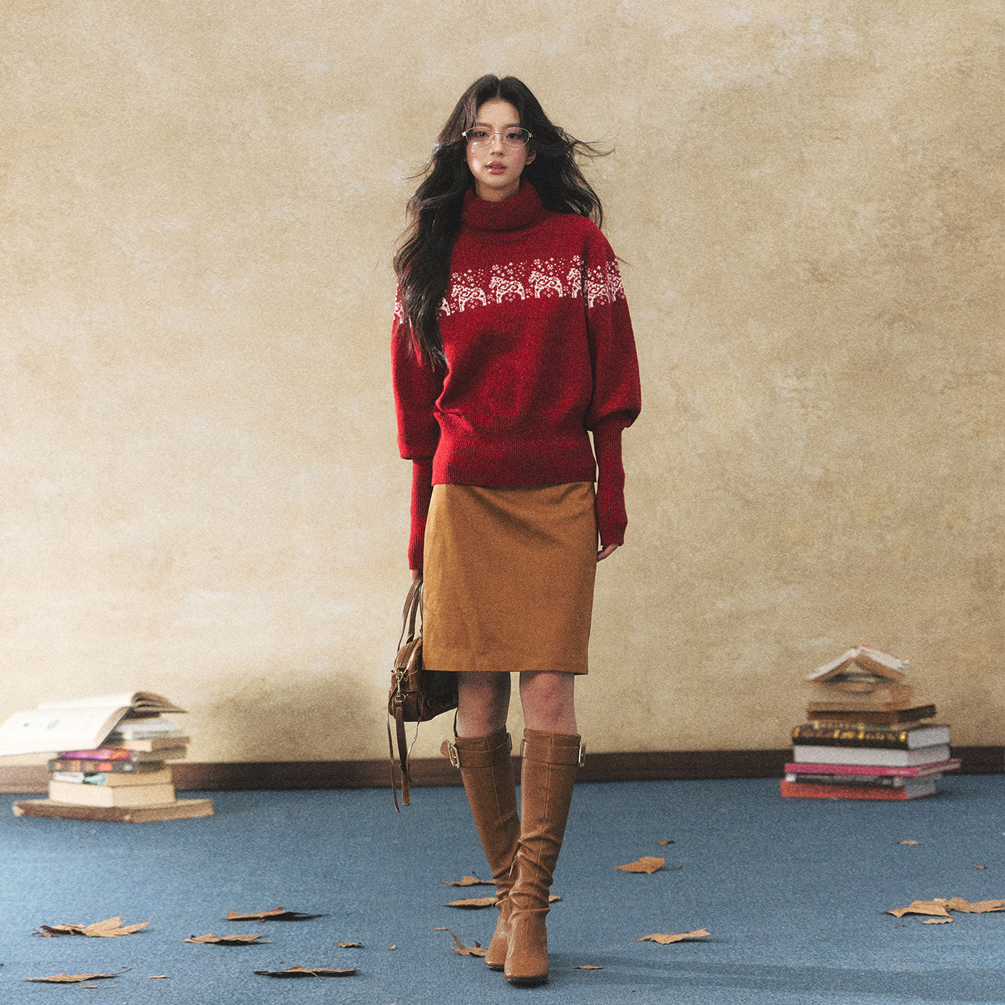 通勤百搭高腰直筒A字裙 新款 7Shiftin 原创设计复古麂皮半身裙冬季