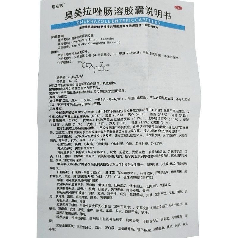 2板 12粒 盒胃酸过多引起烧心反酸 奥美拉唑肠溶胶囊20mg 居安诺