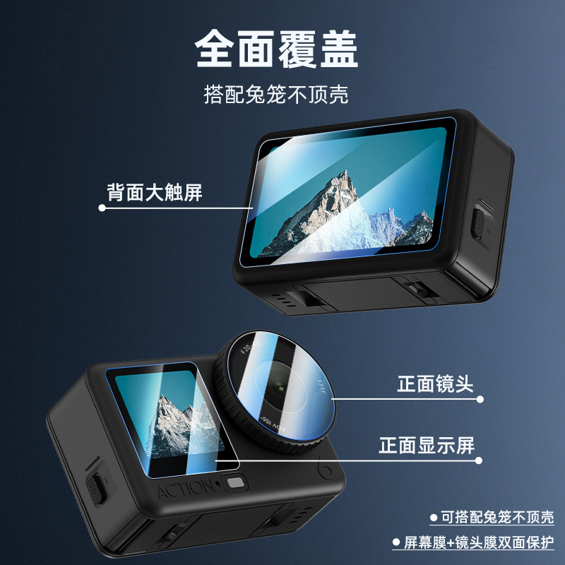 Flymile适用大疆Action6金属兔笼磁吸快拆底座运动相机action6屏幕镜头钢化膜AR增透膜三脚架收纳包配件