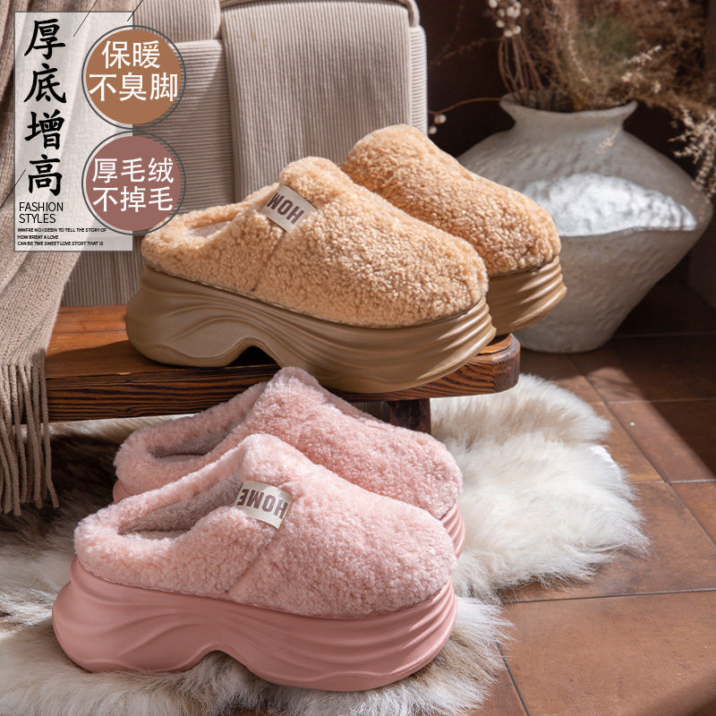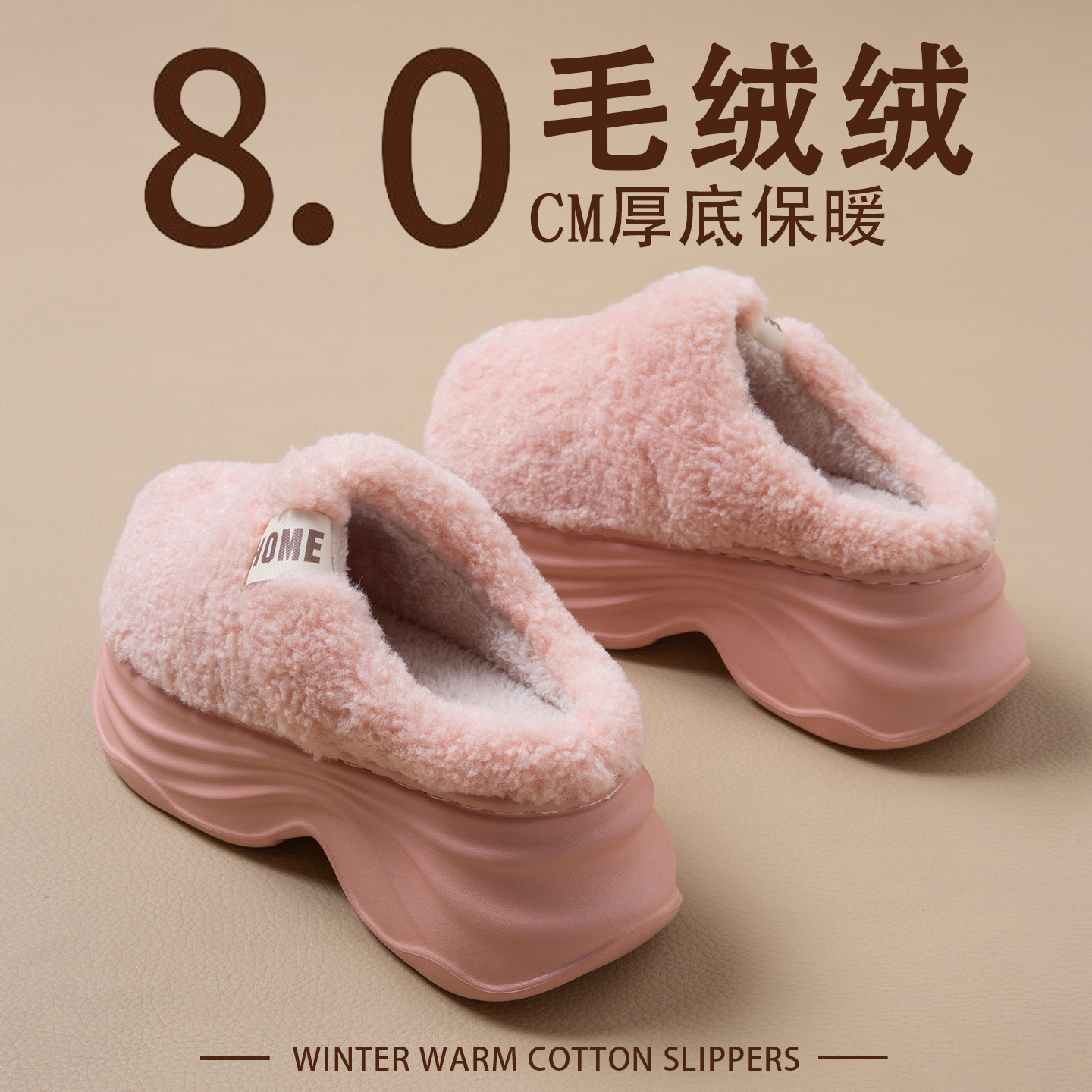女增高居家室内棉拖冬季 外穿防水厚底加绒保暖棉拖鞋 男士 亚束棉鞋