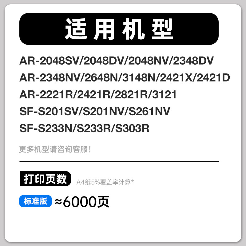 2348D复印机碳粉AR1808S 237粉盒238 MX235CT 2308墨盒碳粉芯片 适用夏普通用墨粉AR 2008 2048S碳粉2648N