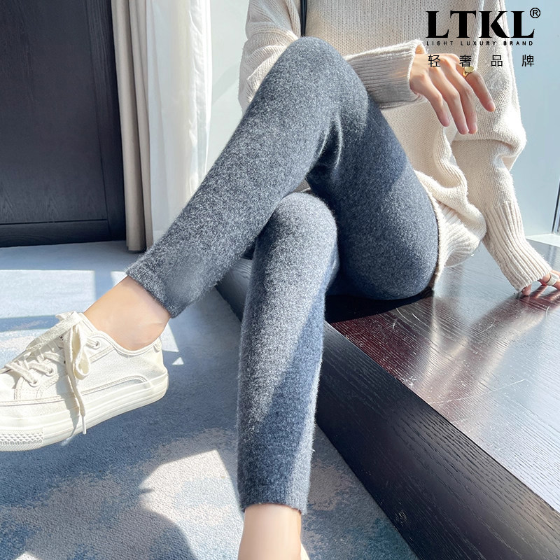 菇娘家澳洲美丽诺羊毛灰色打底裤 袜 女冬外穿加厚保暖压力瘦腿连裤