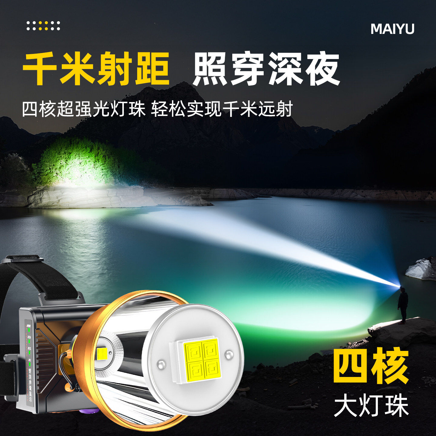 头灯野外强光2026新款 超长续航钓鱼专用灯赶海充电矿灯 超亮头戴式