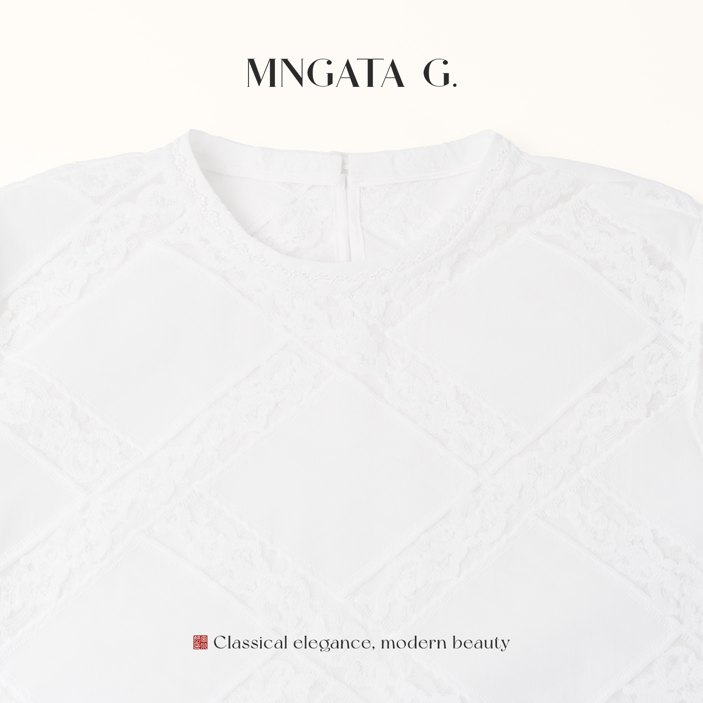 小牙边短袖 新中式 上衣6020822 手作·钩花菱格 宫小妍