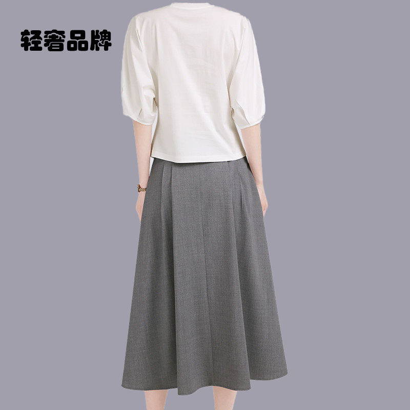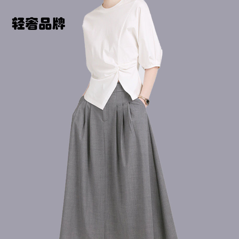 淡人穿搭套装 新款 T恤半身裙气质两件套女2026年夏季 朗姿约定短袖