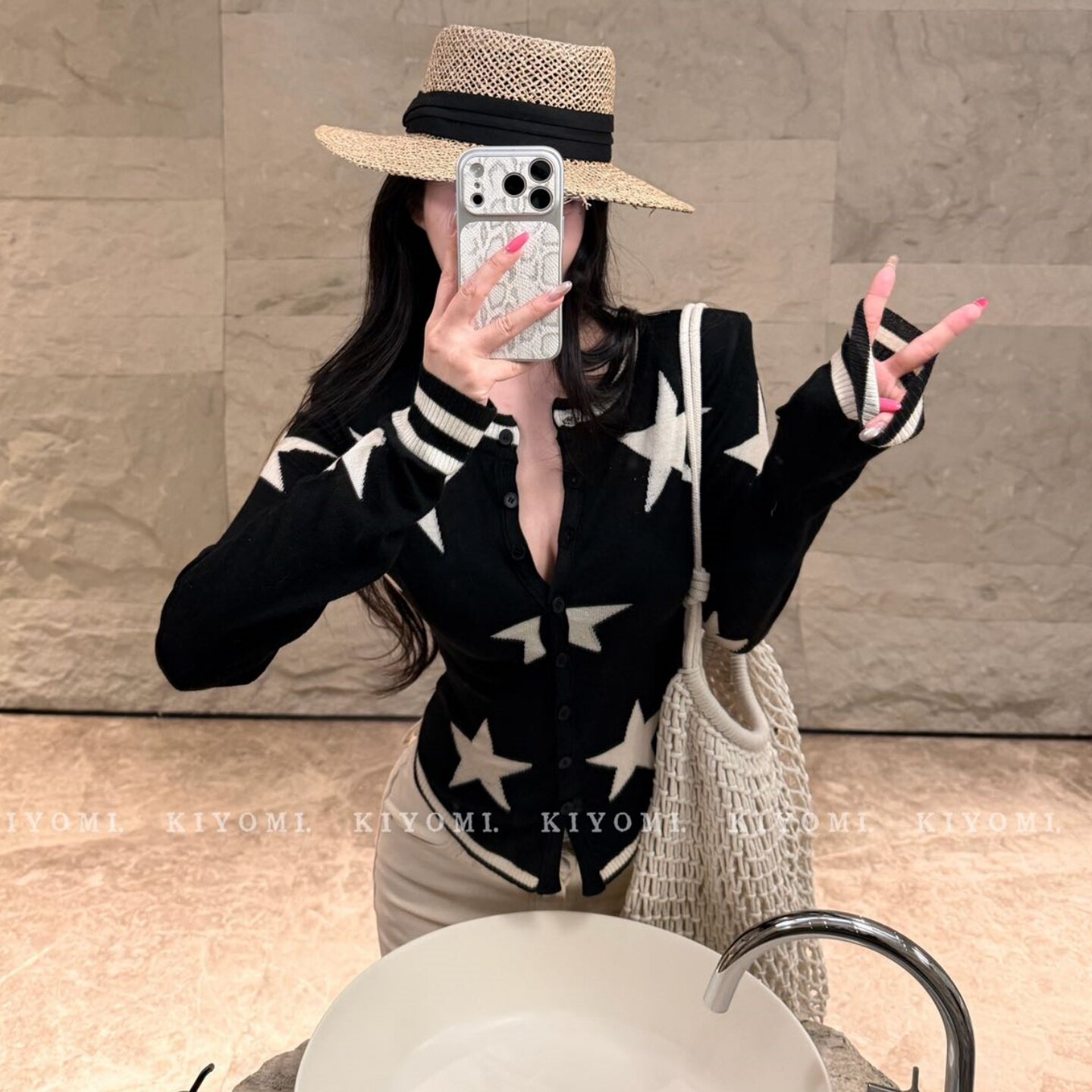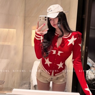 针织衫 十三行KIYOMI2026春季 气质星星印花显瘦V领长袖 韩版 女 新款