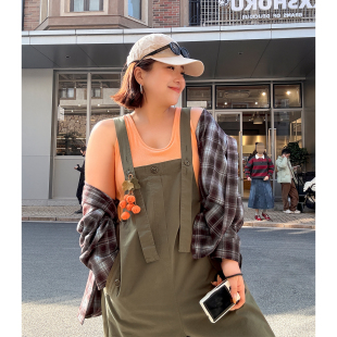 宽松可调节舒适休闲裤 胖mm工装 女装 春木子理想大码 子200斤 背带裤