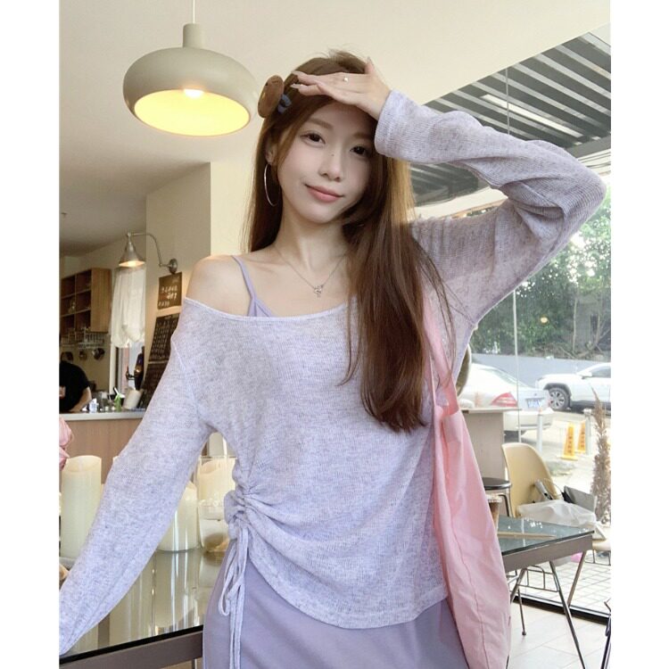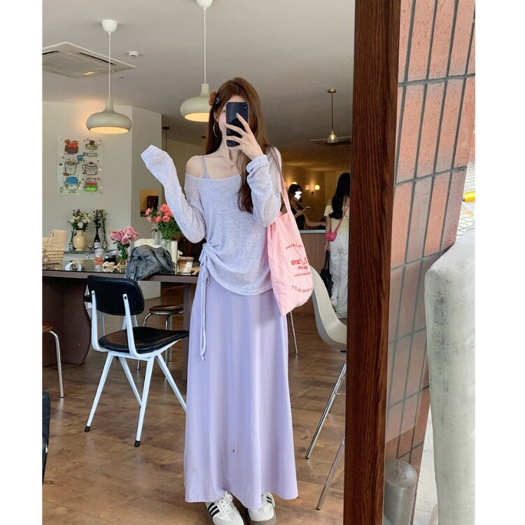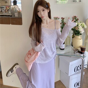 漏肩防晒罩衫 紫色吊带连衣裙薄款 两件套女设计感 女装 MM谢谢家大码