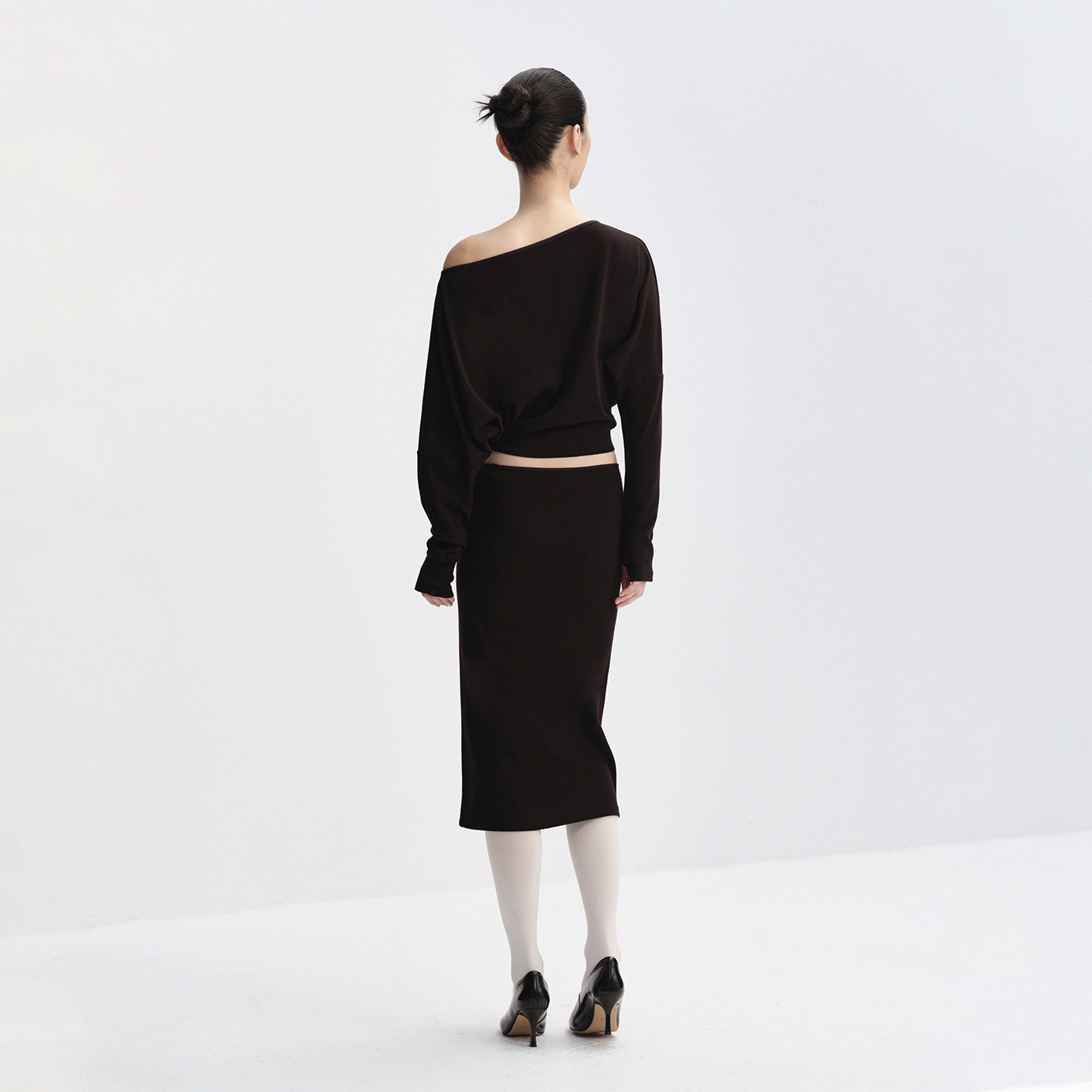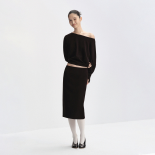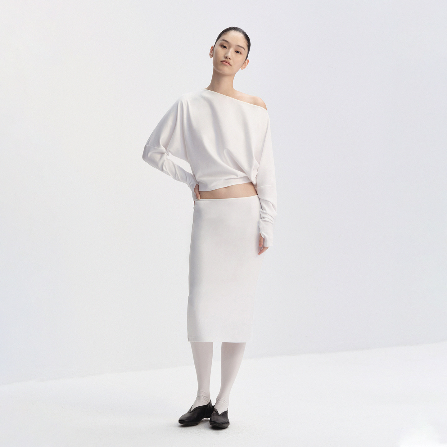 everyday 黑色 斜肩蝙蝠袖 T恤 白色 收腰长袖