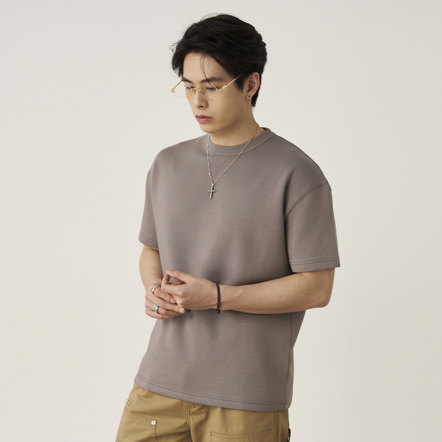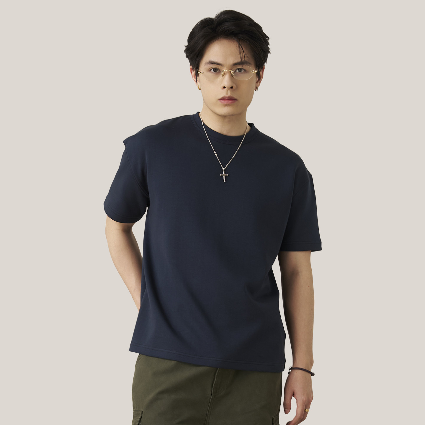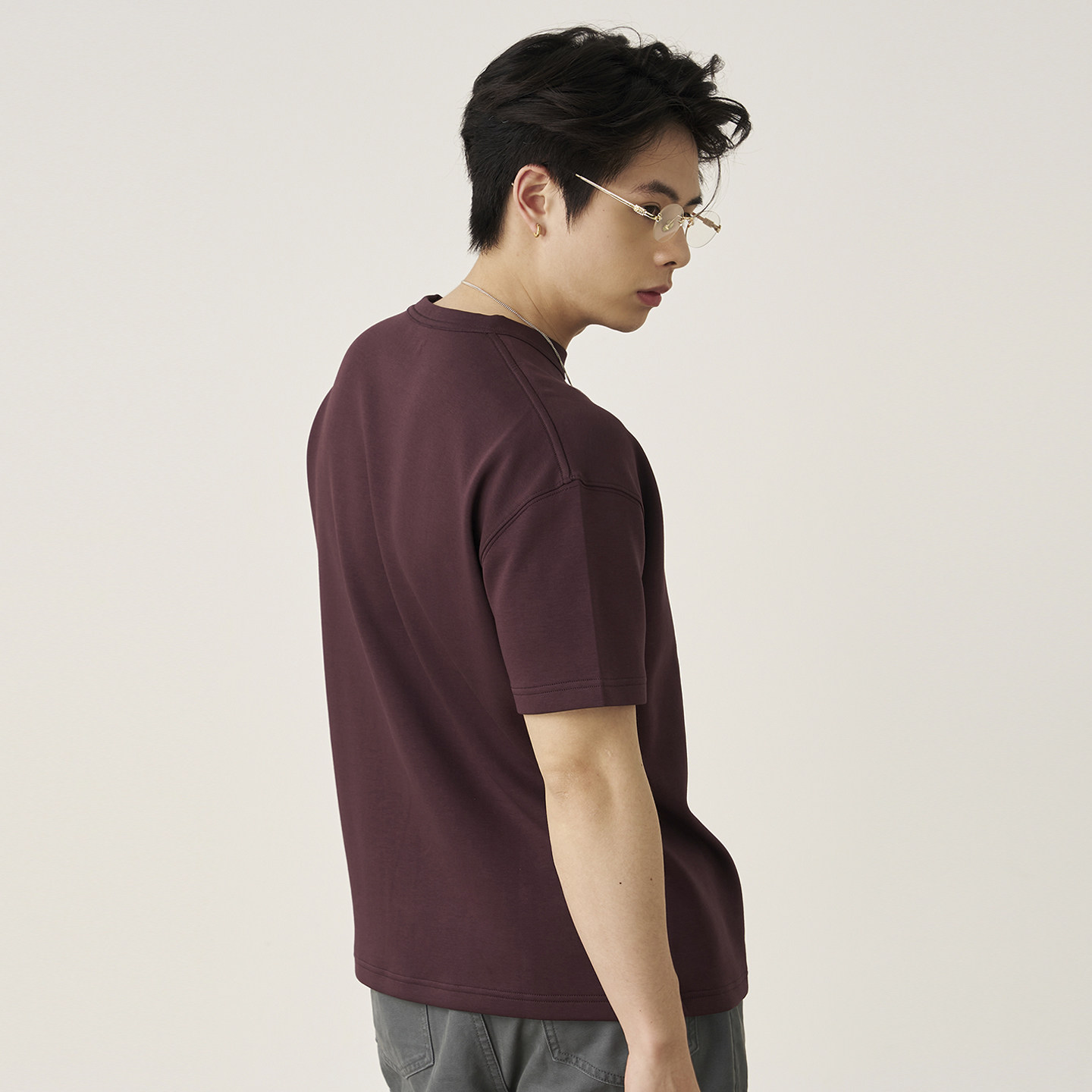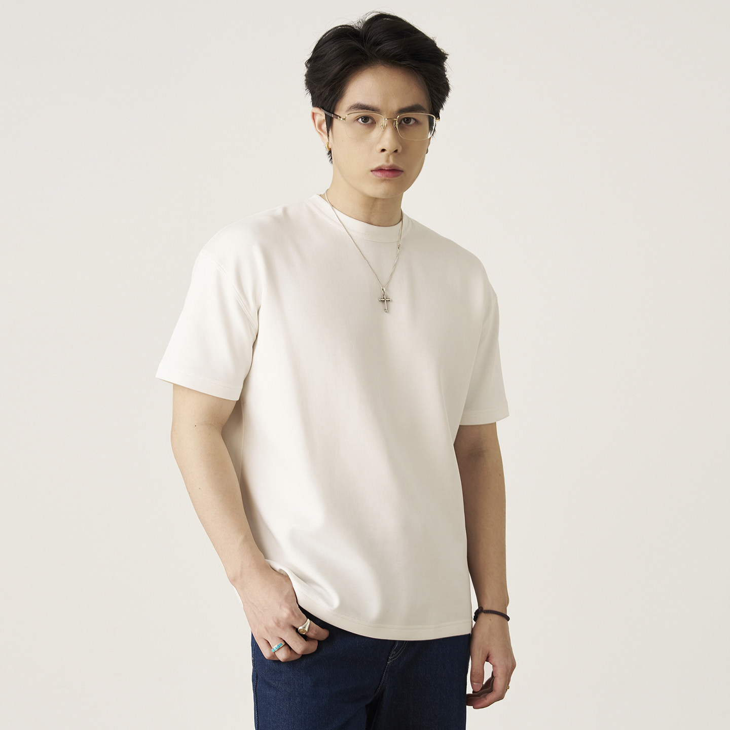 GOODLIVEABLE 空气层小领口t恤男 匹马棉通勤纯色微宽松OS口粮短袖