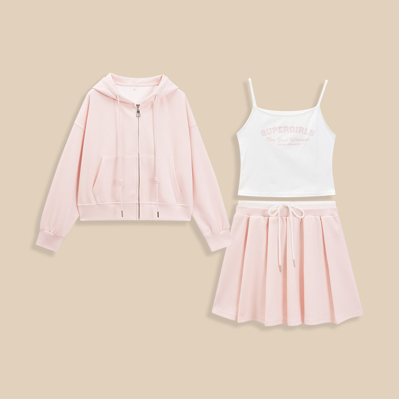 甜美休闲运动风上下三件套裙 韩版 IEF 爱依服一整套2025夏秋新款
