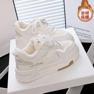 女学生加绒小白鞋 2025爆款 冬季 保暖防滑板鞋 鞋 休闲运动棉鞋 子新款