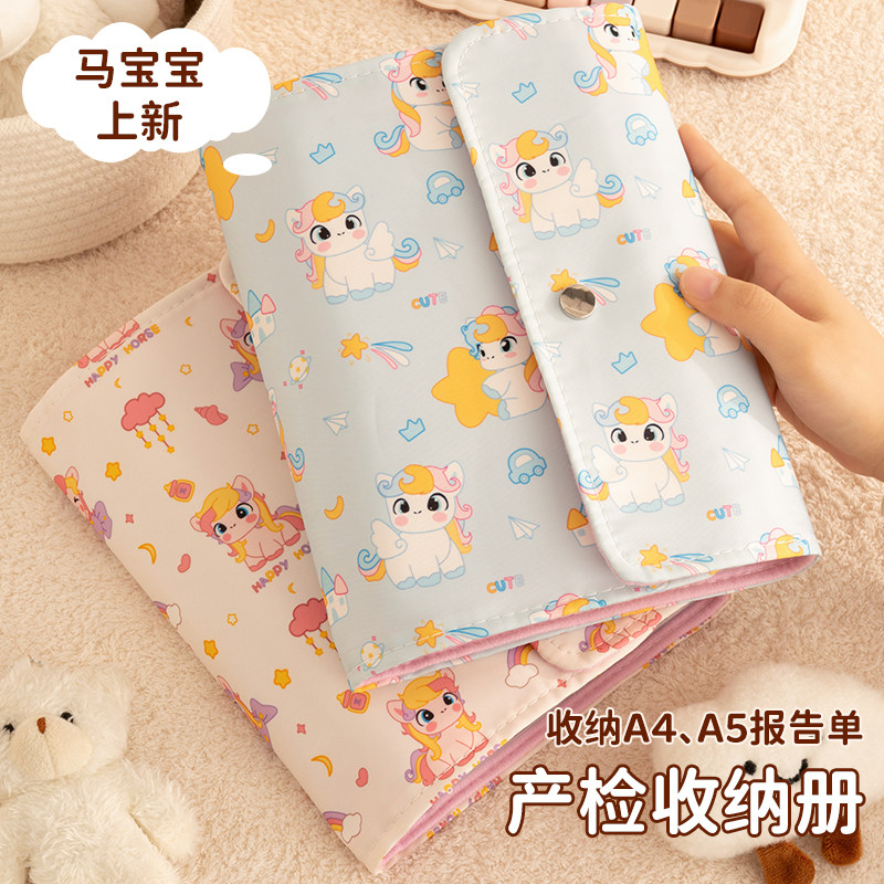 三年二班 收纳袋a4产检报告单马宝宝检查单怀孕记录册孕妈孕期档案册孕妇初期用品 小马孕检收纳册折叠便携式