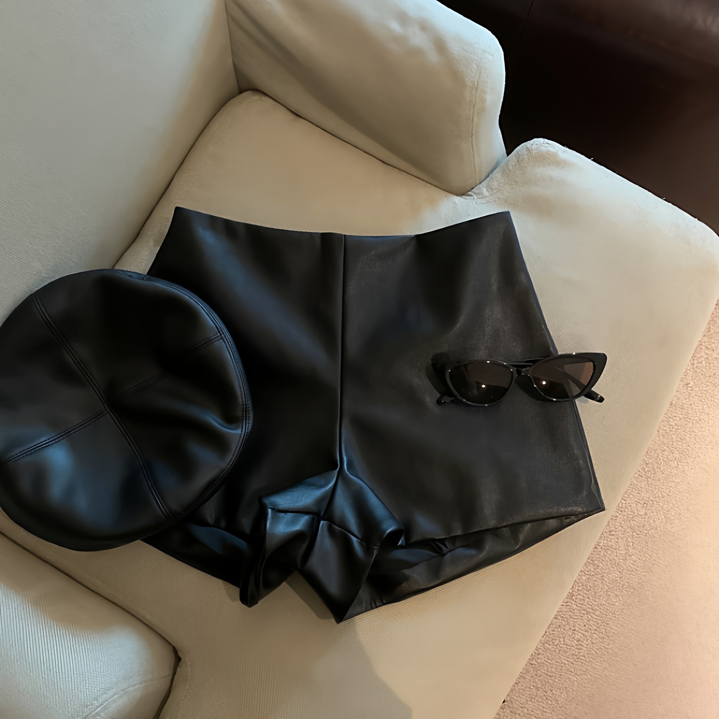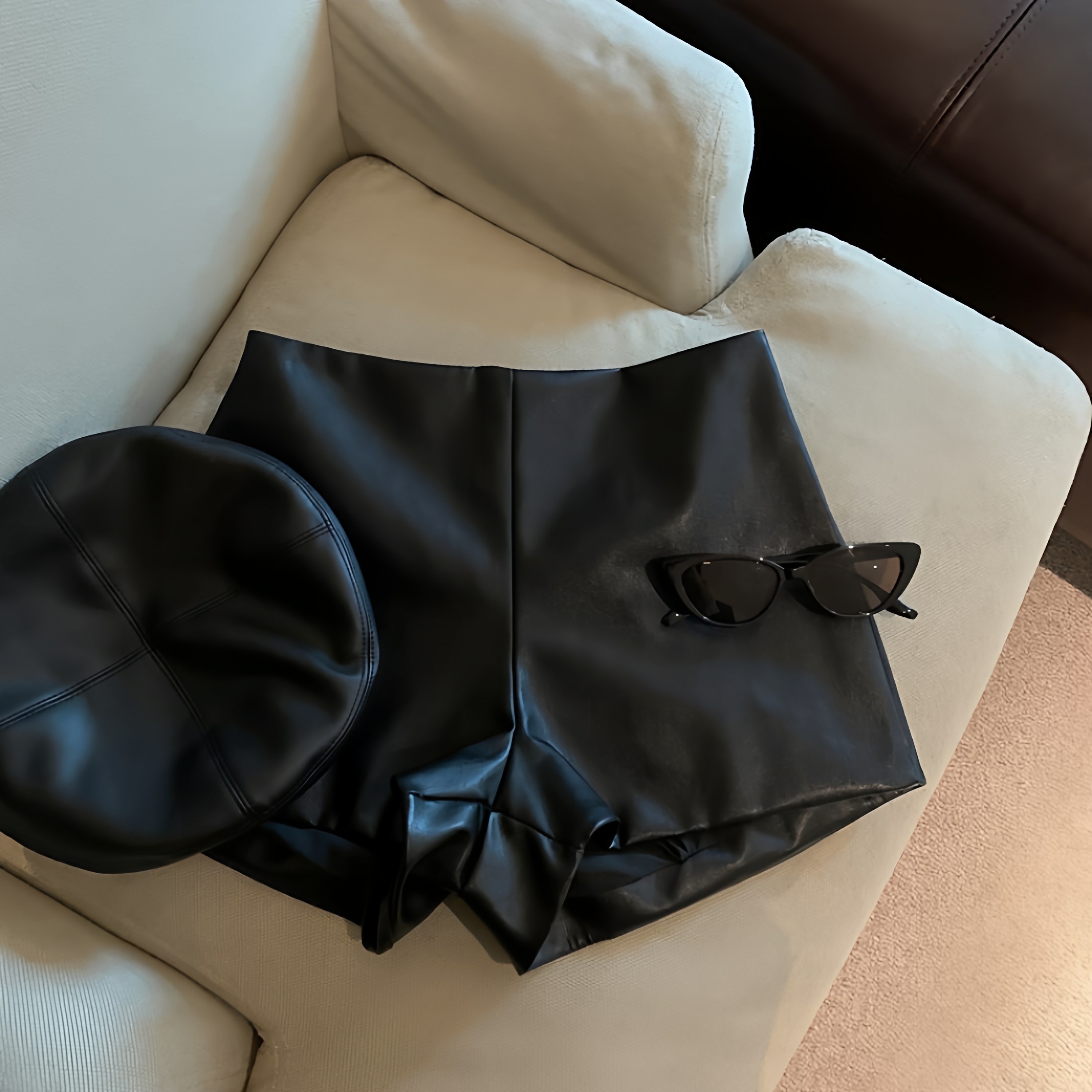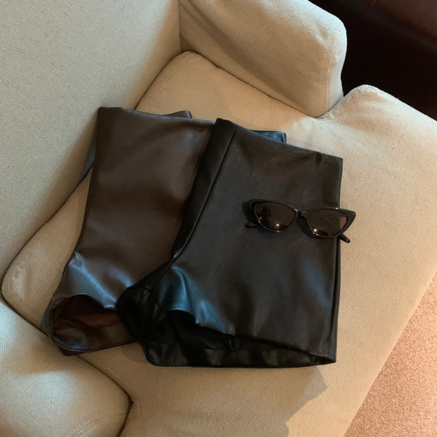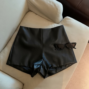 辣妹a字靴裤 外穿高腰显瘦休闲皮裤 女春秋新款 微胖mm黑色pu皮短裤