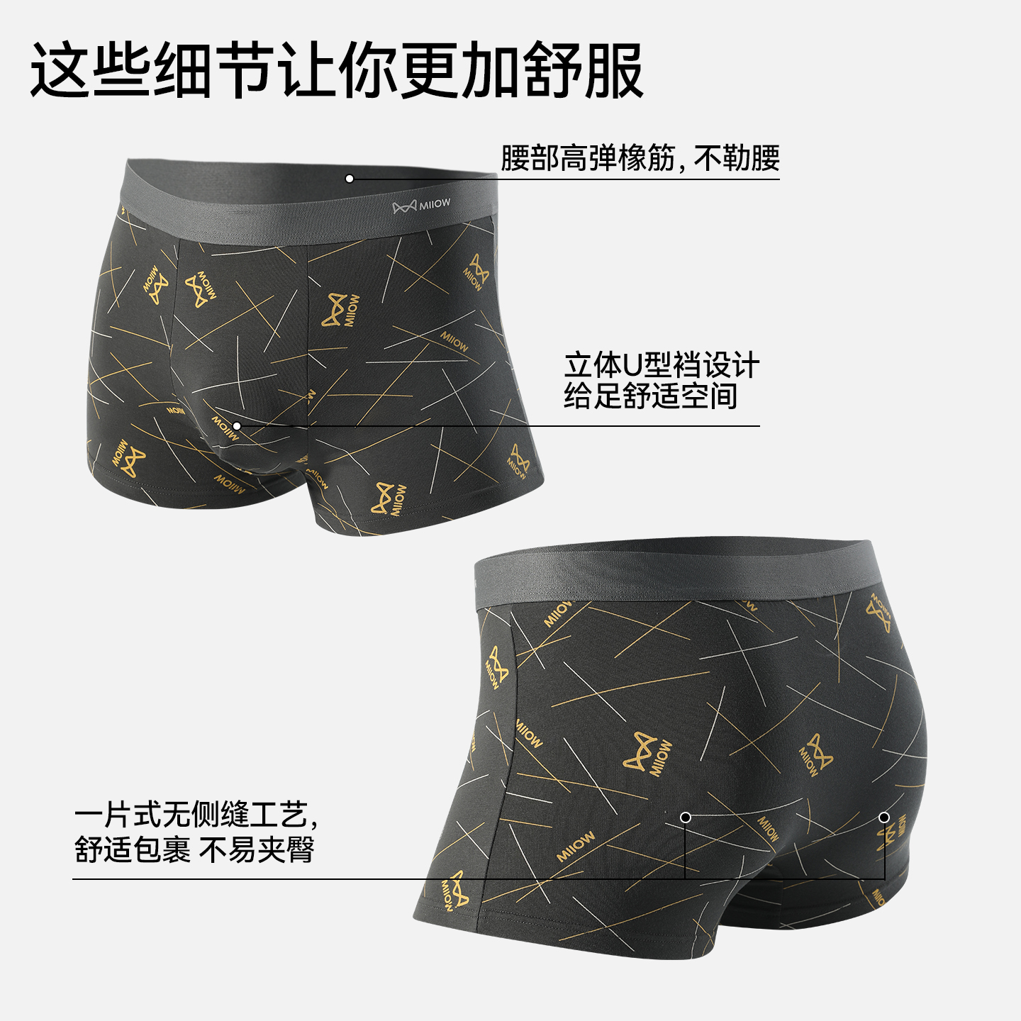 2025新男款 男生纯棉平角裤 透气全棉裆四角裤 男式 猫人男士 大码 内裤