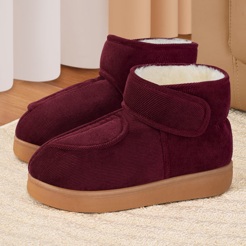 牛筋底防滑 全包跟男女居家保暖加绒中老年宽脚棉鞋 冬季 老人棉拖鞋