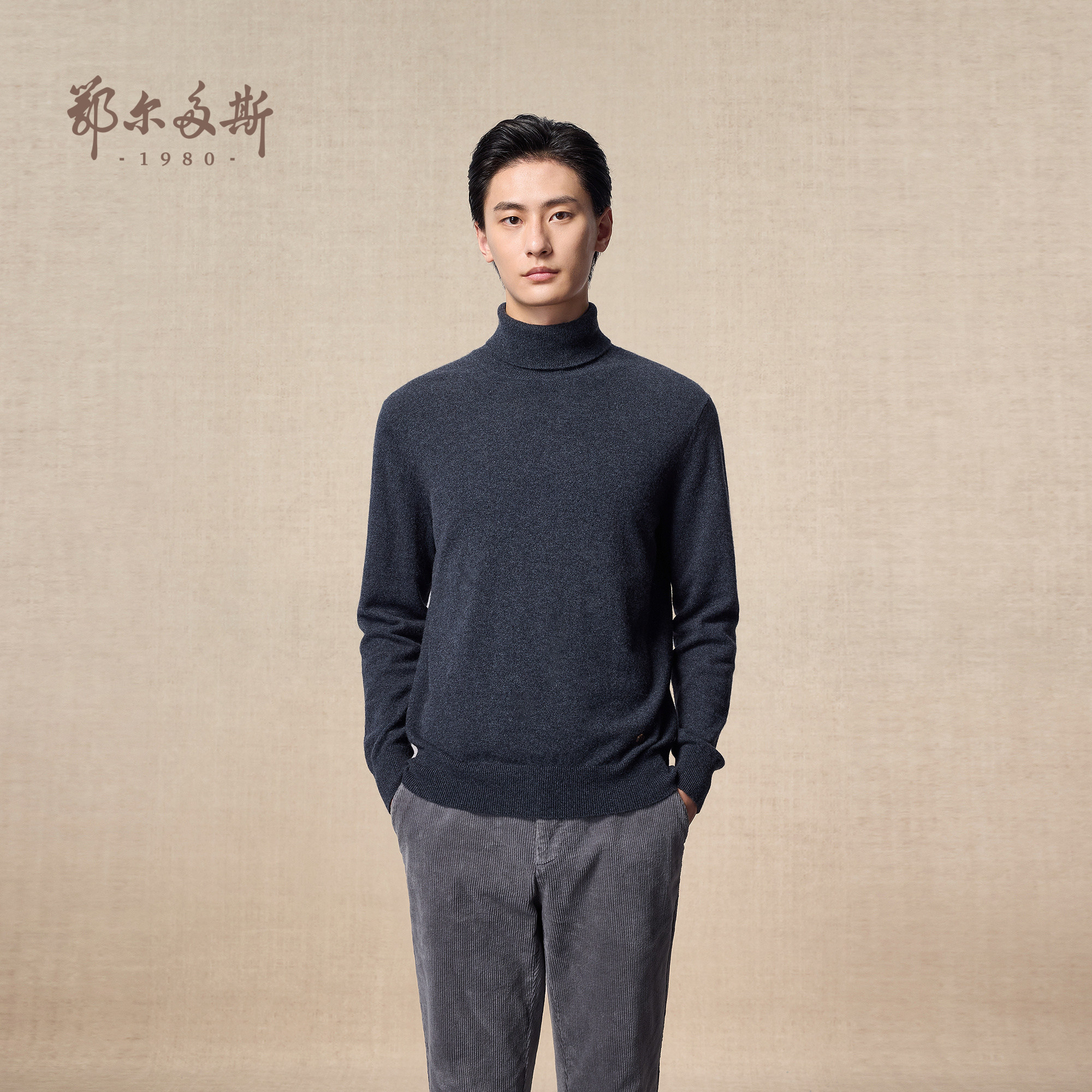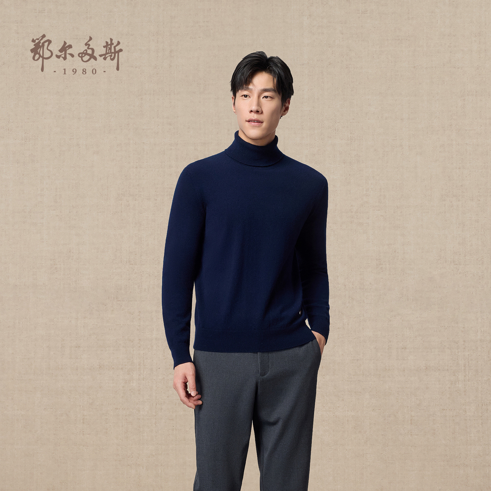 高领羊绒衫 翻领 秋冬百搭经典 版 鄂尔多斯1980 直身保暖针织衫 男装