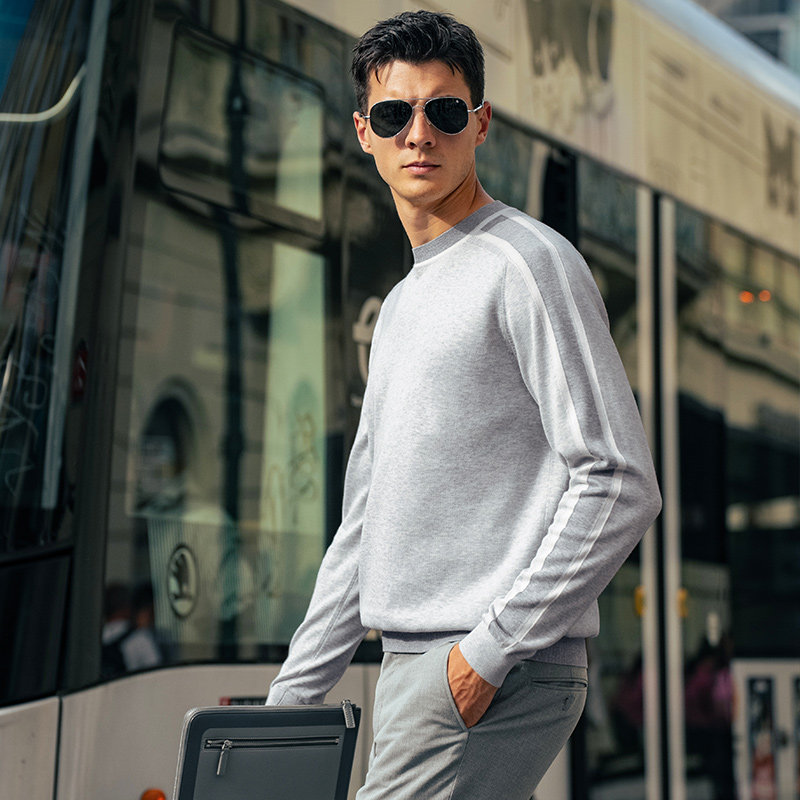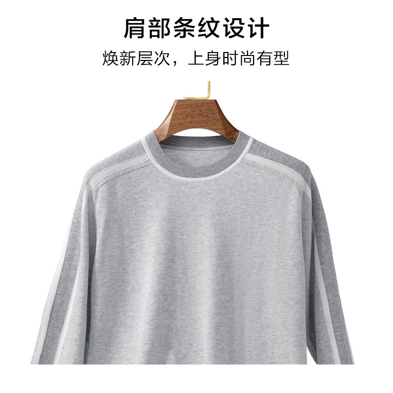 男BT16885 撞色条纹长袖 MrBu布先生百搭圆领纯棉针织衫 2025秋冬款