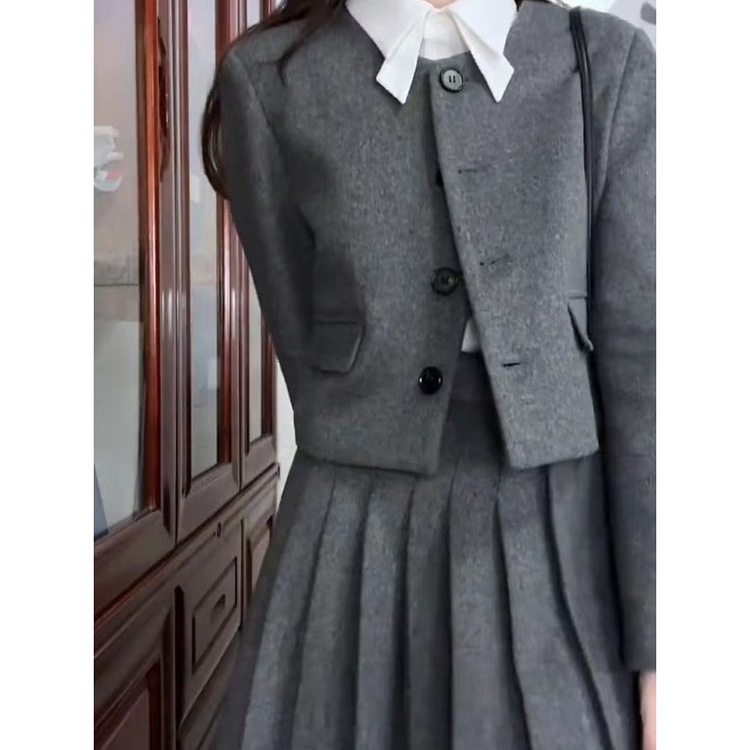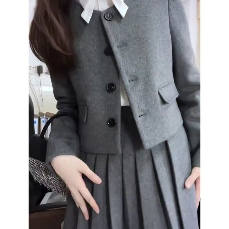 桔梗温柔风外套裙子衬衫 法式 三件套 感小洋装 秋冬小香风套装