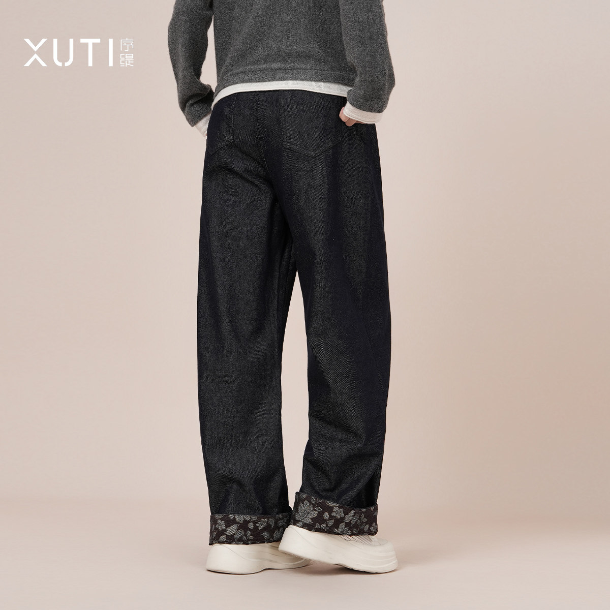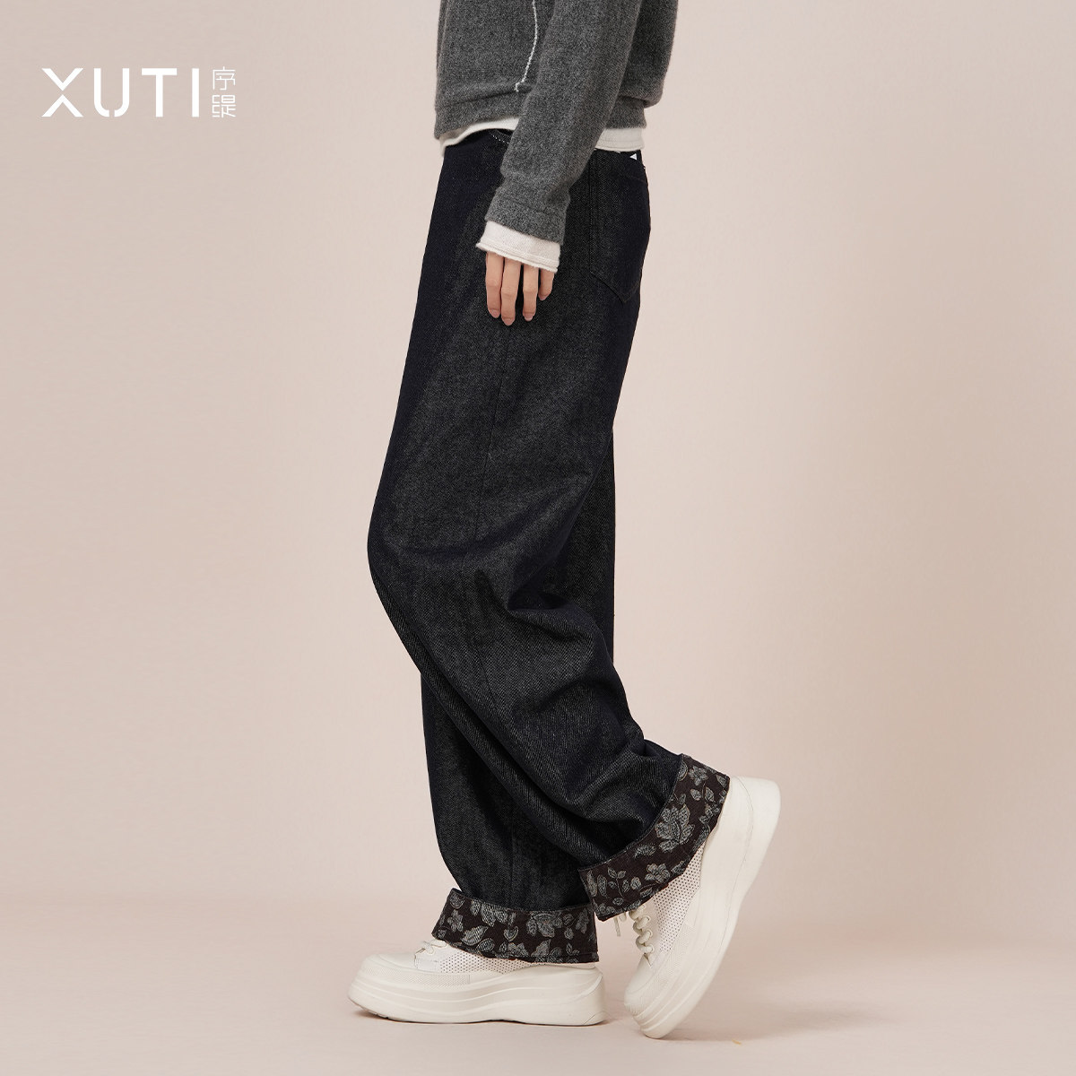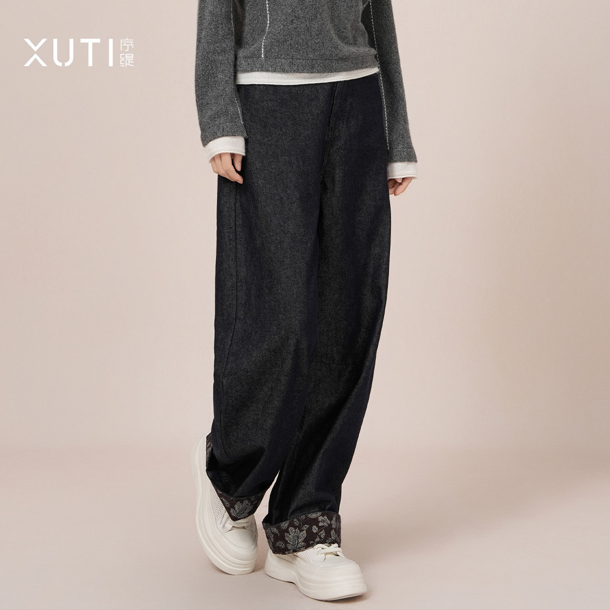 子J71 序缇质造秋季 宽松休闲直筒长裤 女2025新款 21775 印花牛仔裤