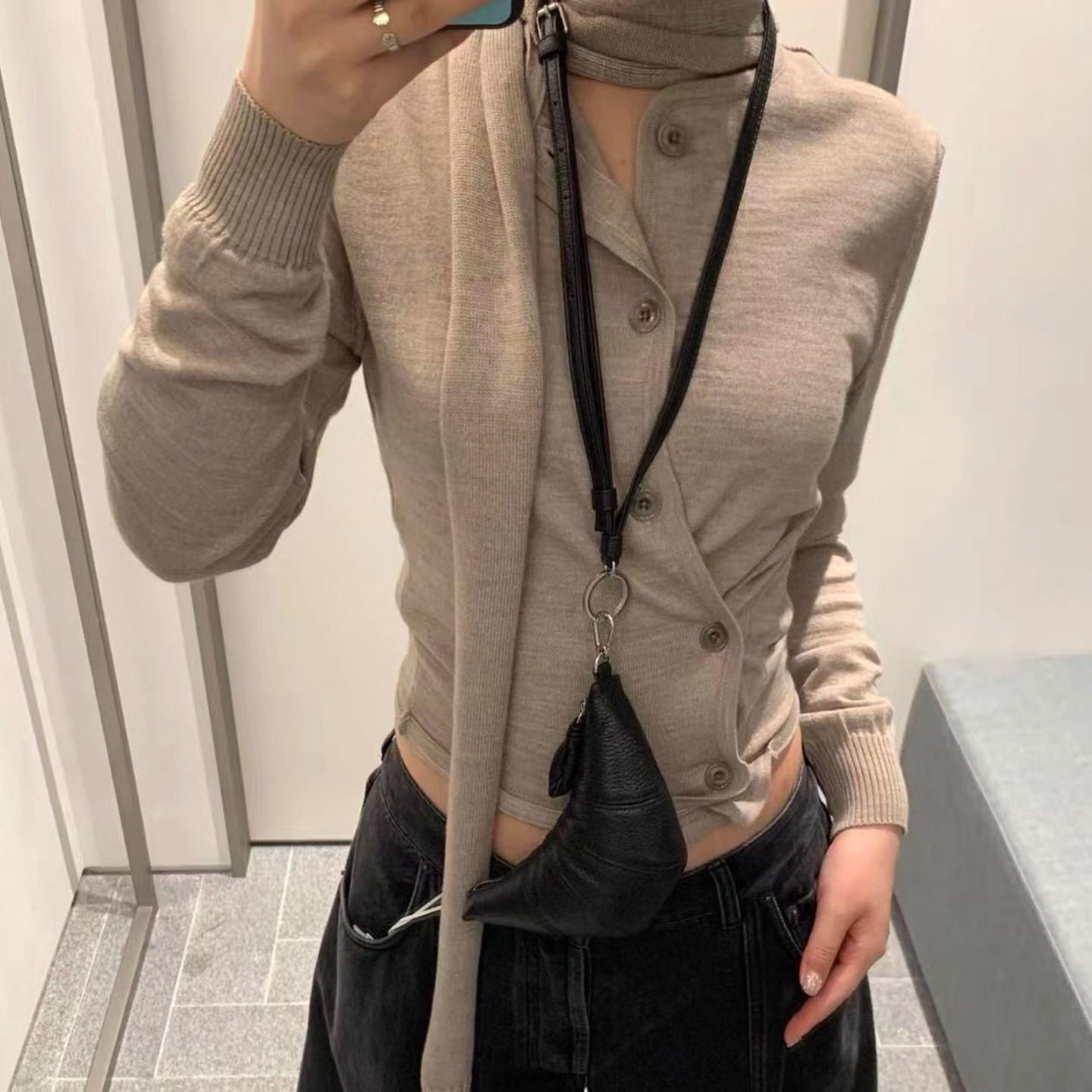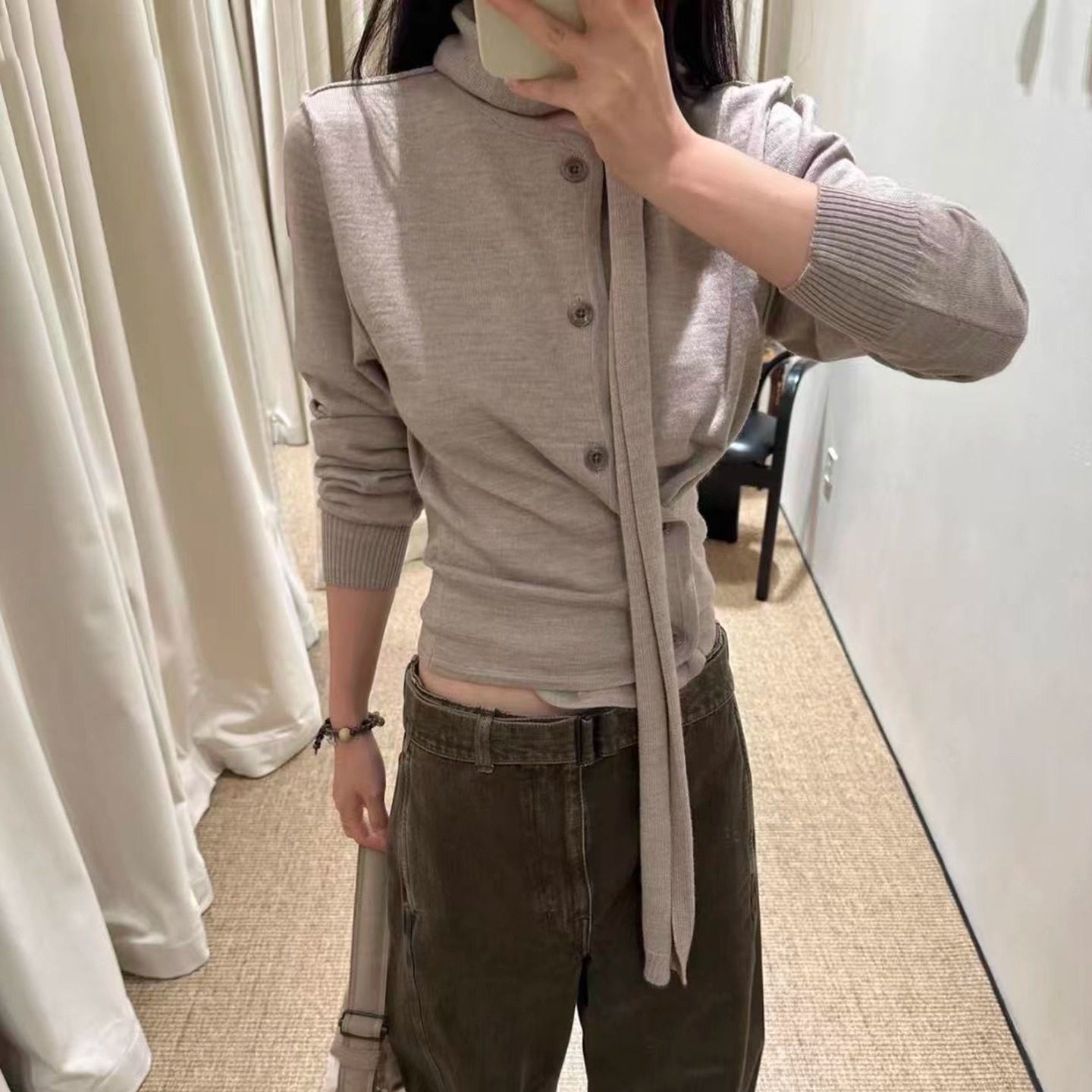 针织修身 浅灰色半高领羊毛打底衫 新款 内搭毛衣2025冬季 黑上衣 女装