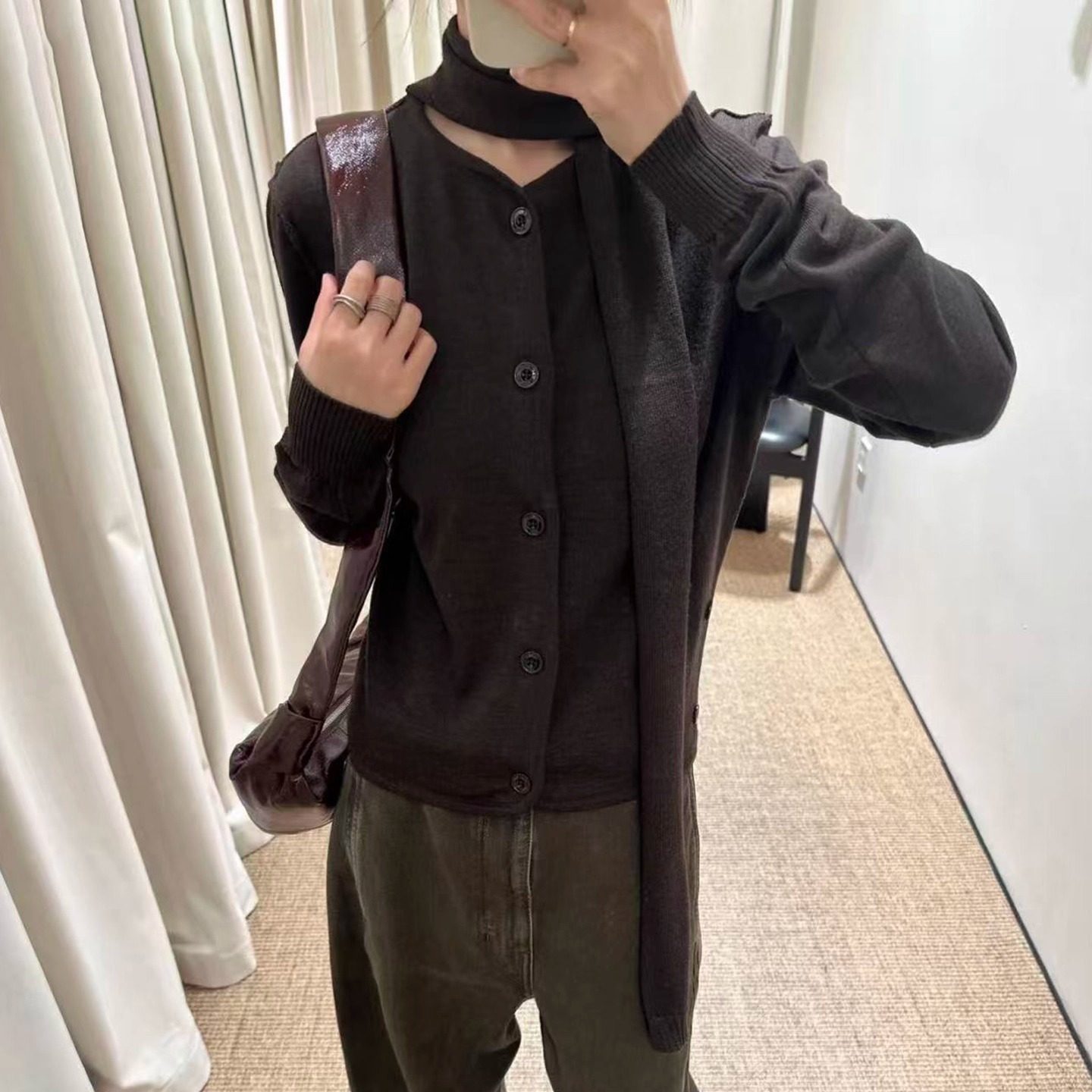 RTIMFD复古假两件v领翻领毛衣 上衣慵懒风外套 cleanfit高级针织衫