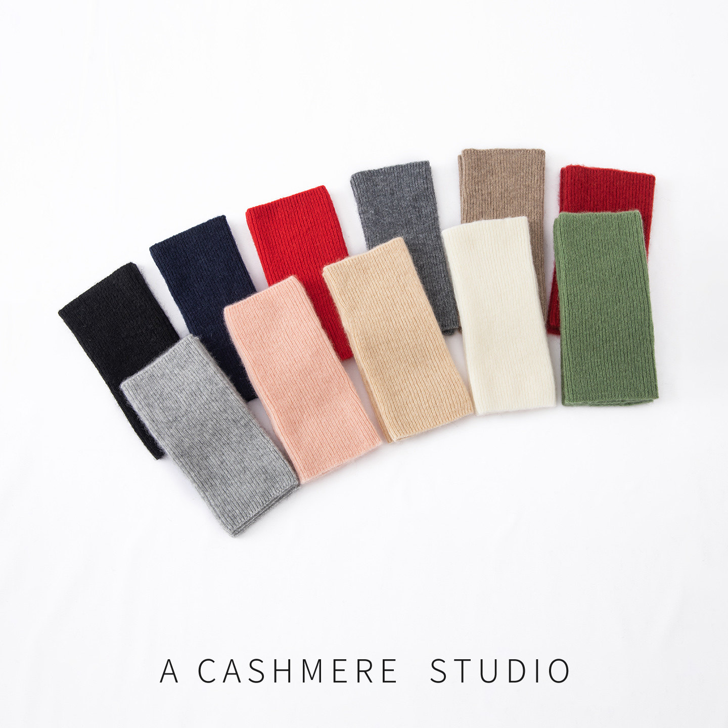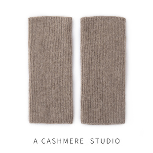 100%纯山羊绒手套女纯色针织漏指半指学生写字保暖护腕手套秋冬
