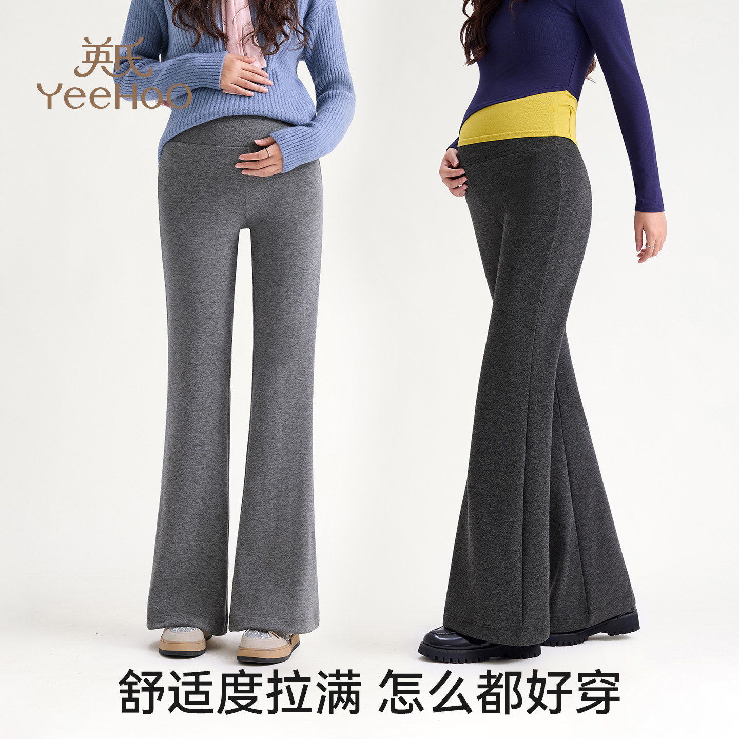 高腰显瘦加绒加厚瑜伽长裤 外穿微喇裤 子秋冬款 英氏孕妇打底保暖裤