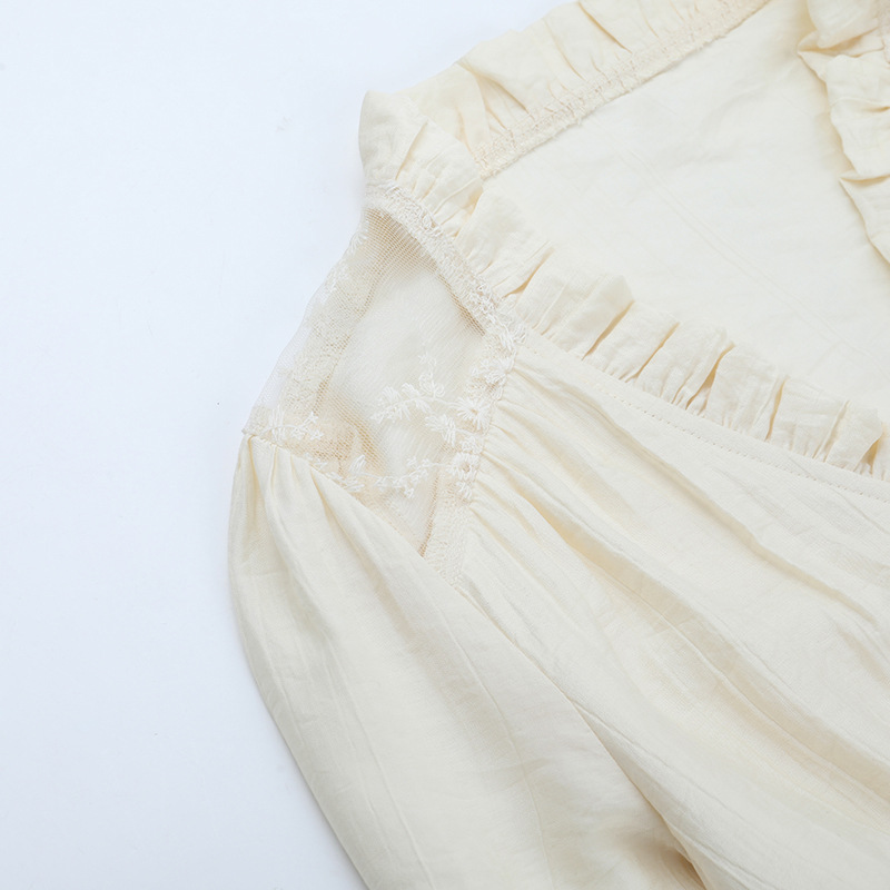 百搭气质上衣女 木耳领衬衫 仙草宝相提花缎真丝桑蚕丝白色法式 长袖