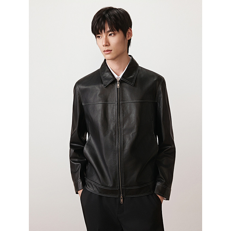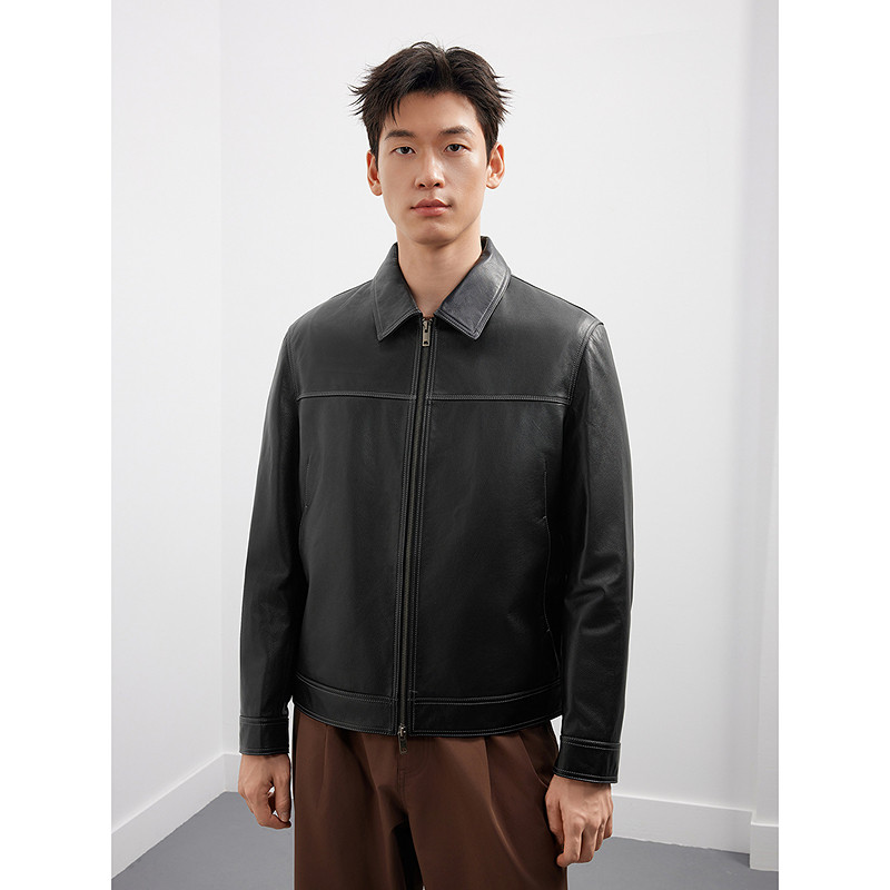 牛皮 夹克 GXG男装 皮衣外套翻领时尚 G25D123001 25年秋新款