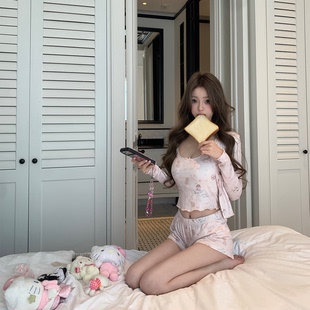 懒懒llan 短裤 Cutttte假日幸福线 吊带 三件套 家居服开衫 你