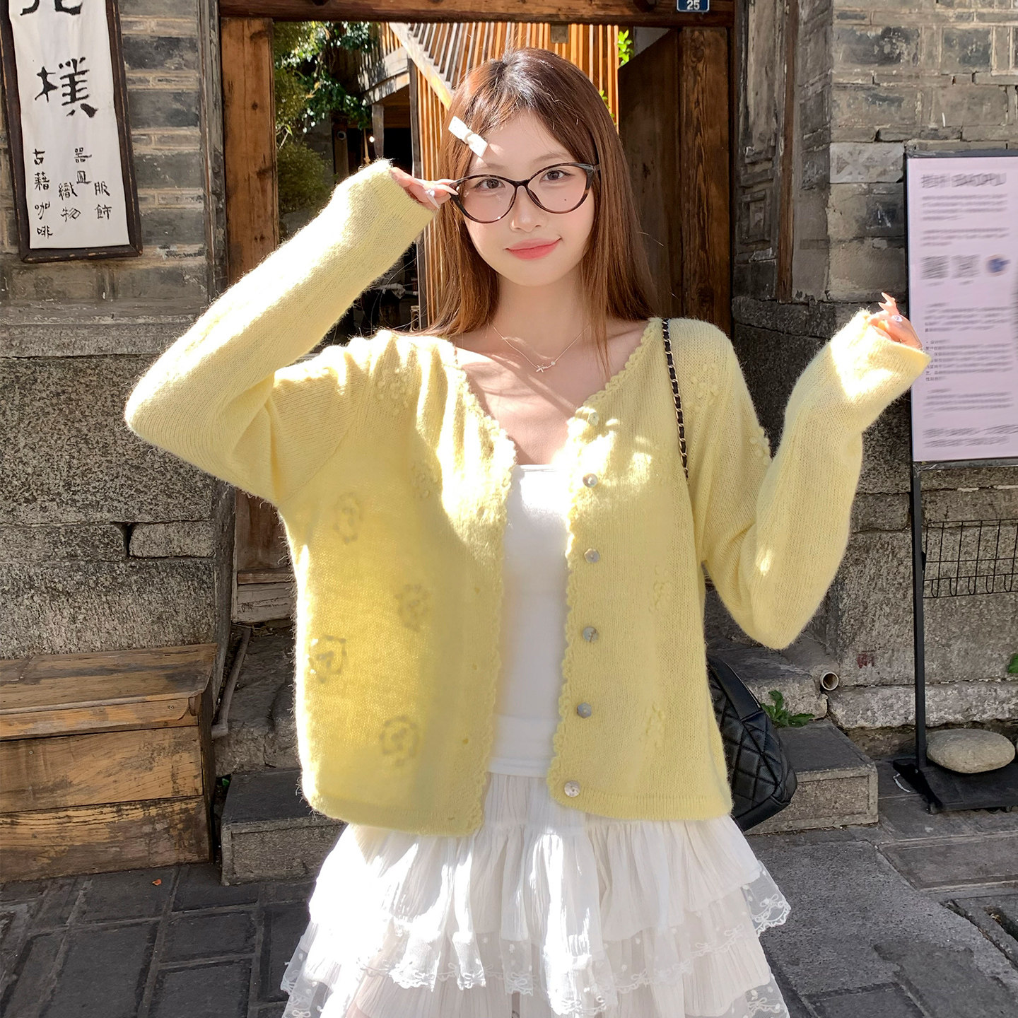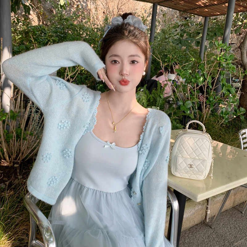 罩衫 薄款 巨好看打底上衣 外套女2026春夏新款 龙妹绿色羊毛针织开衫
