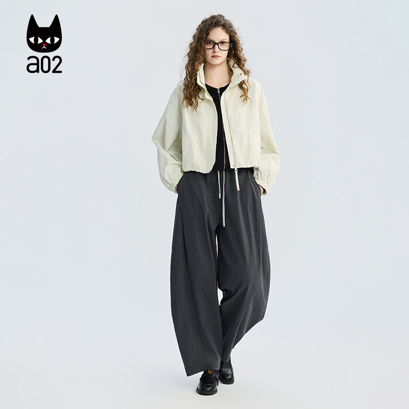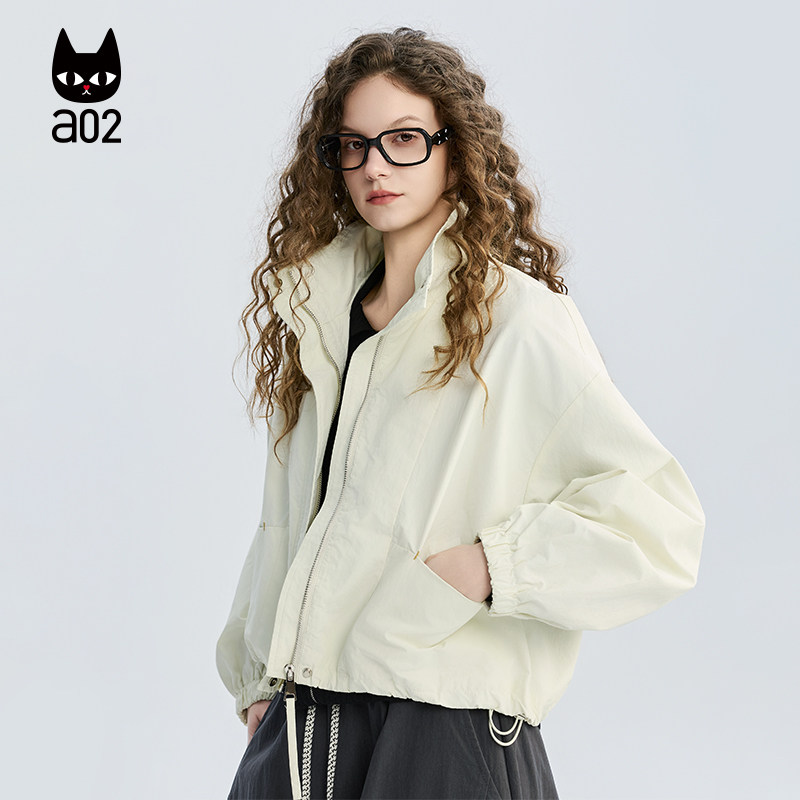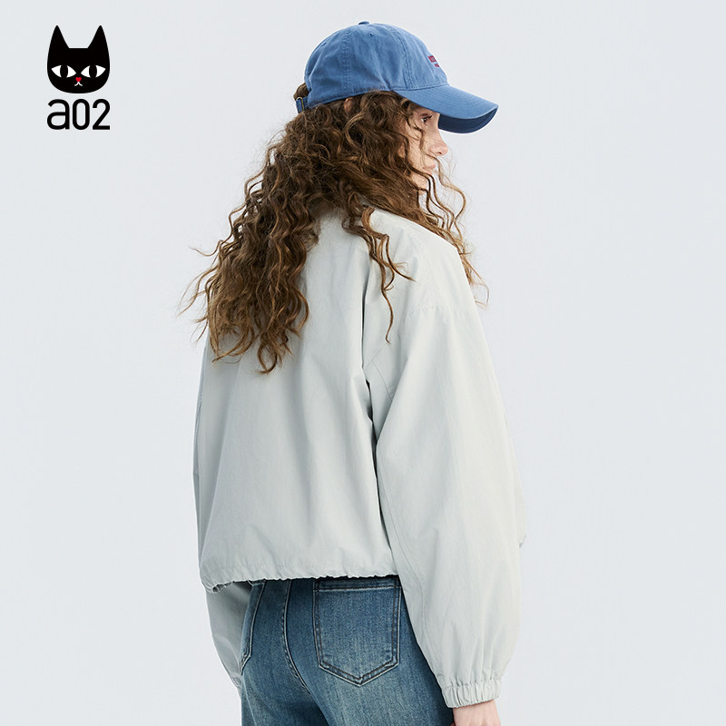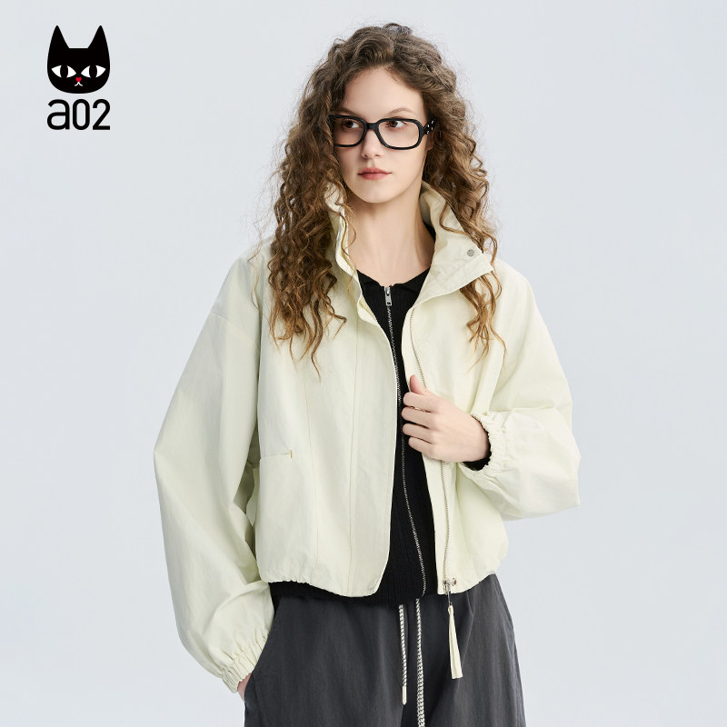 2026轻薄透气微皱面料休闲春装 春季 外套女款 a02宽松立领韩系短款