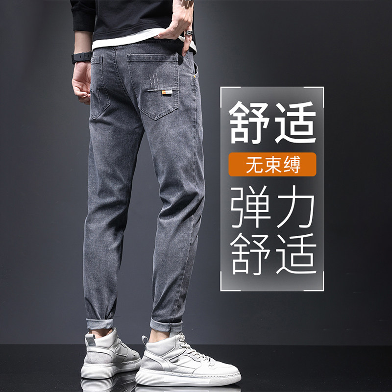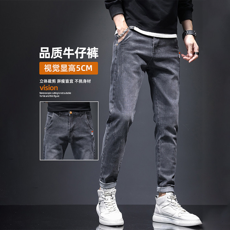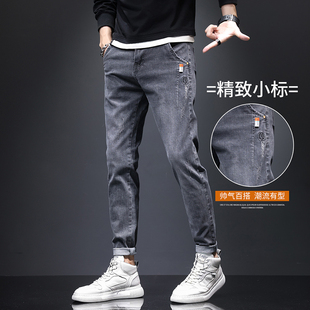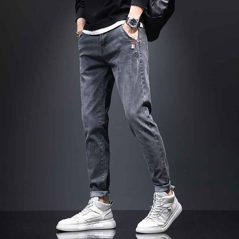 男韩版 刺绣弹力牛仔裤 潮流宽松直筒长裤 修身 春秋季 百搭休闲裤 大码