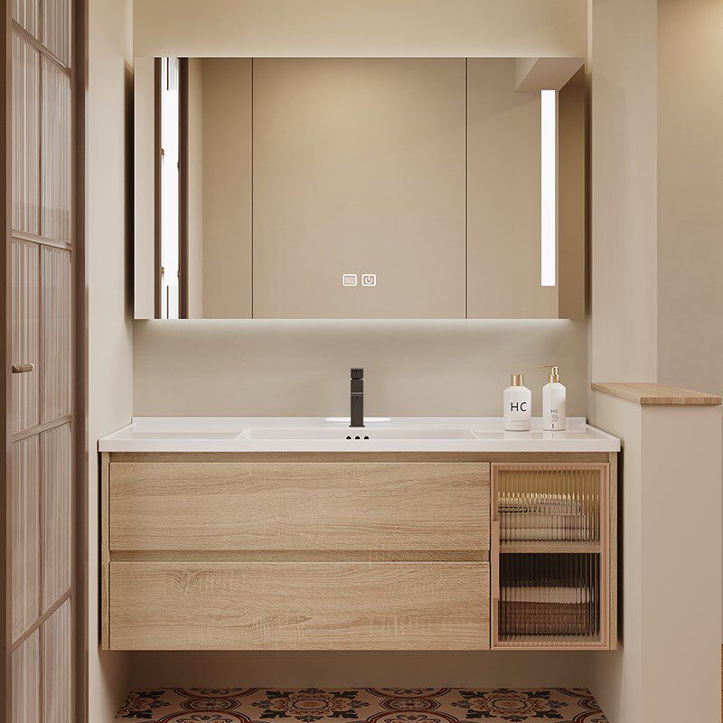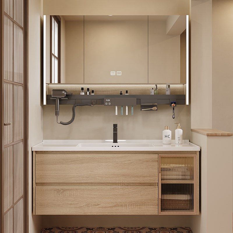 原木风浴室柜镜柜组合卫生间陶瓷一体洗脸盆柜厕所洗漱台洗手盆柜
