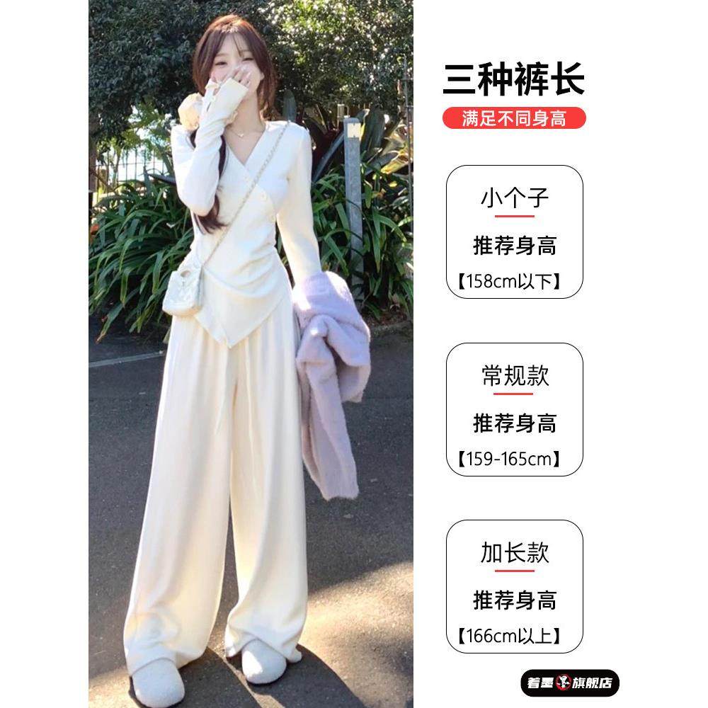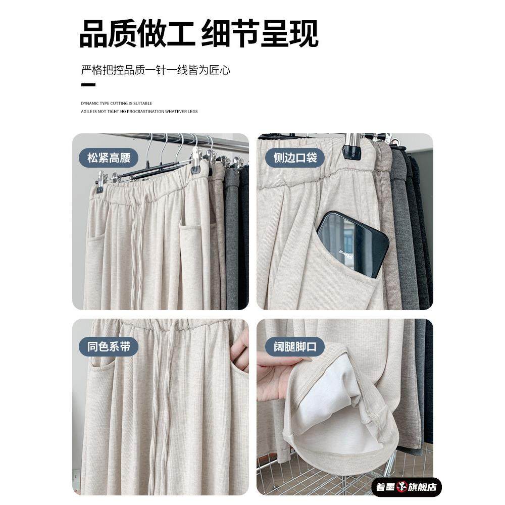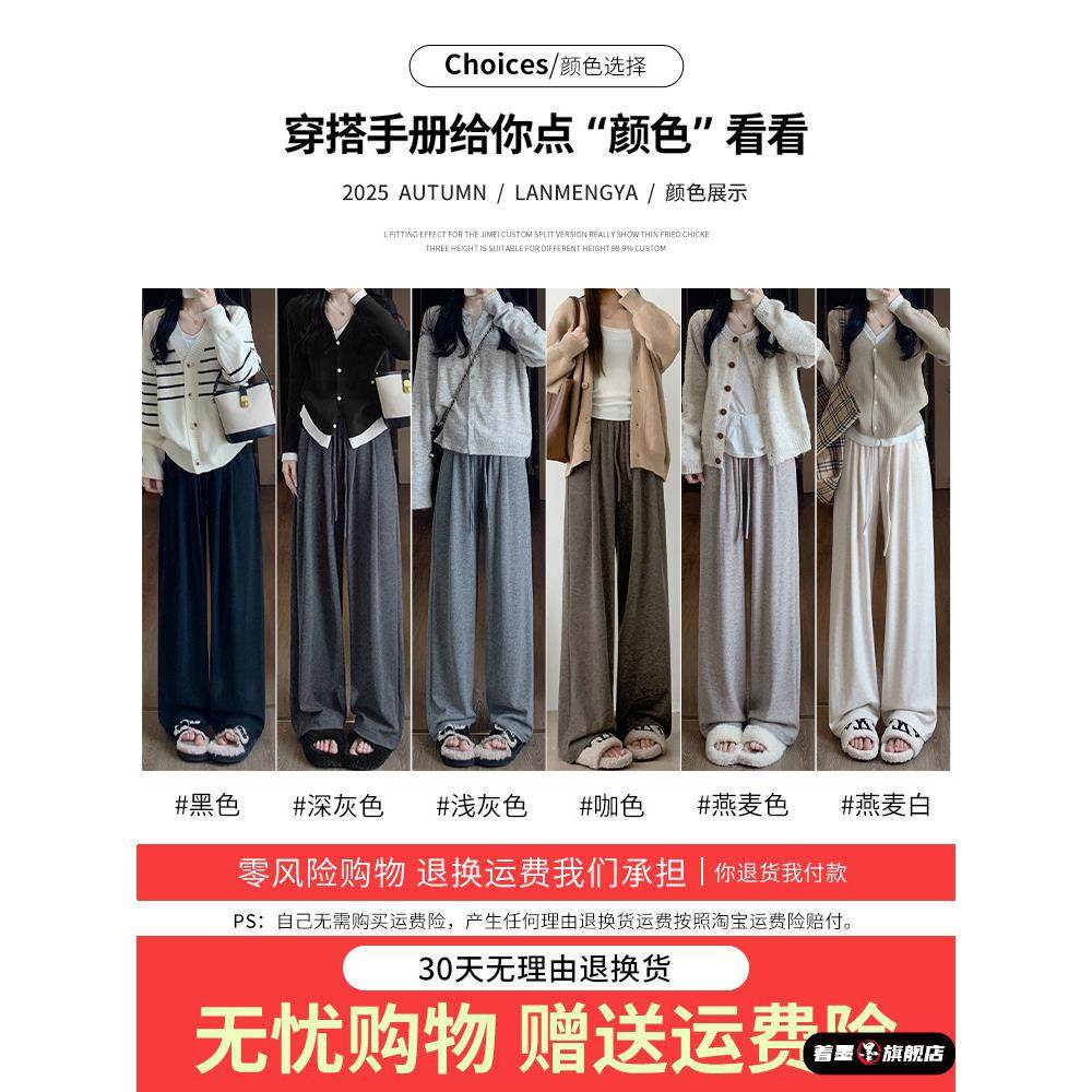 直筒休闲小个子垂感慵懒秋冬加绒阔腿裤 2025新款 女秋季 灰色糯米裤