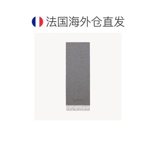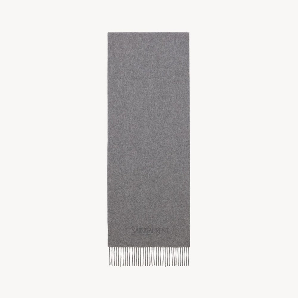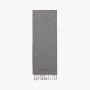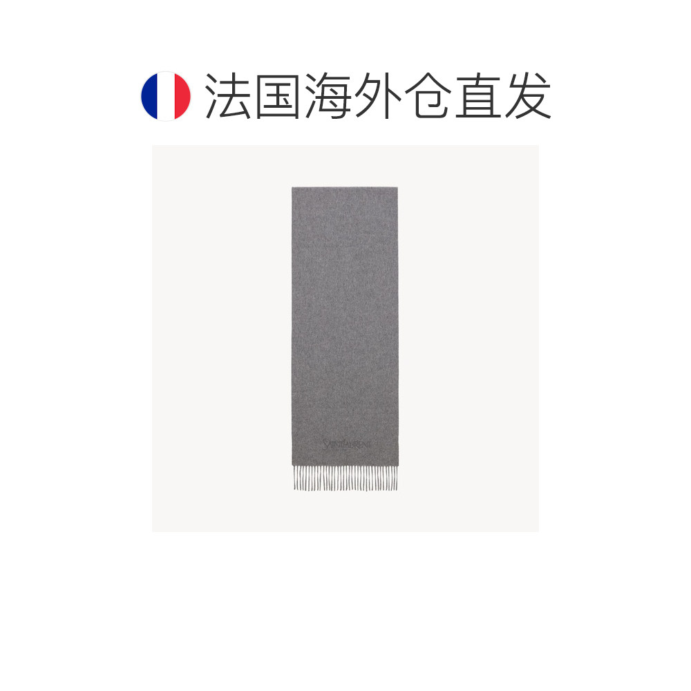 自营欧洲直邮YSL圣罗兰 石墨色羊绒logo刺绣流苏围巾 男士