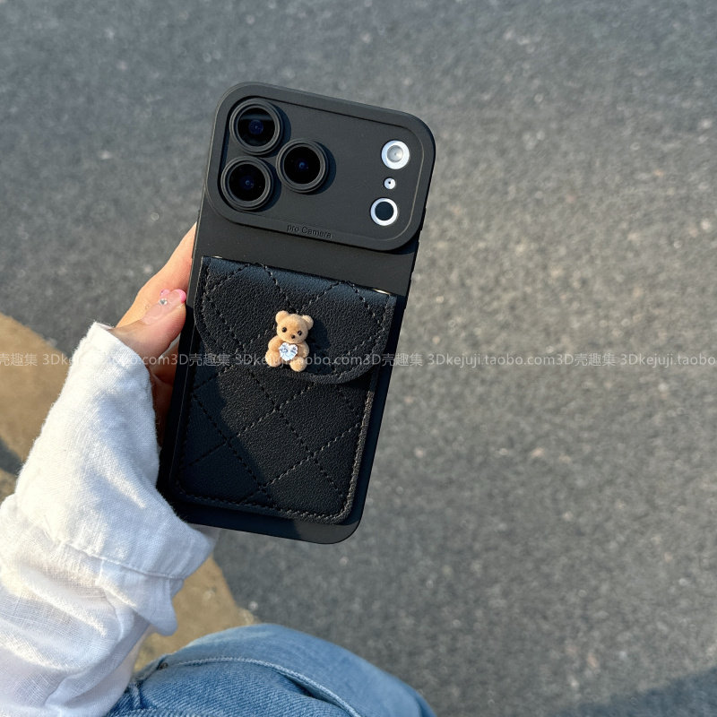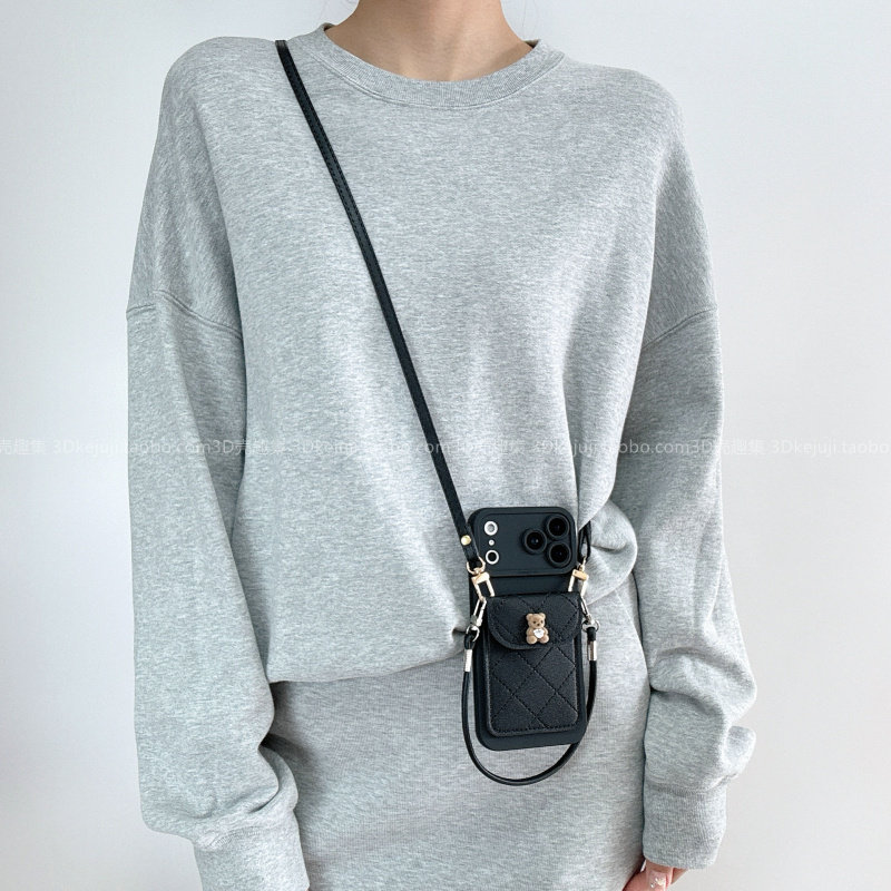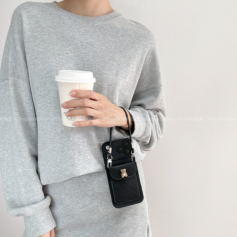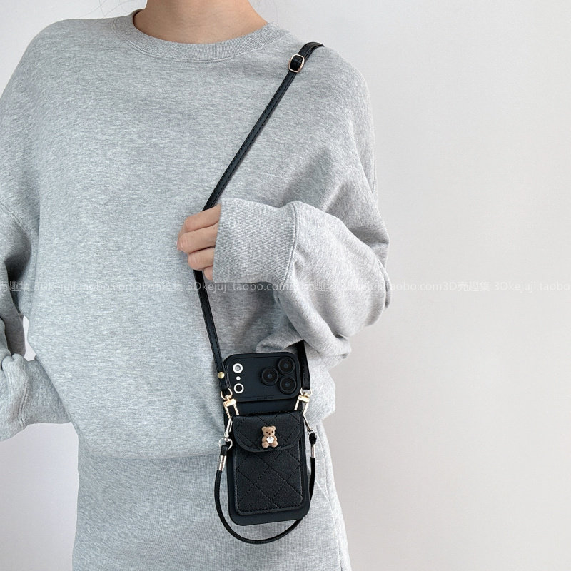 13手机壳findx9 x7斜挎背带挂绳A3 A6pro手提保护套 x8s 秋冬氛围感撞色菱格小熊插卡包适用OPPOReno15