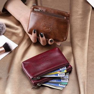 复古手工皮质零钱包女式 可爱迷你耳机钥匙证件收纳随身便携小钱包