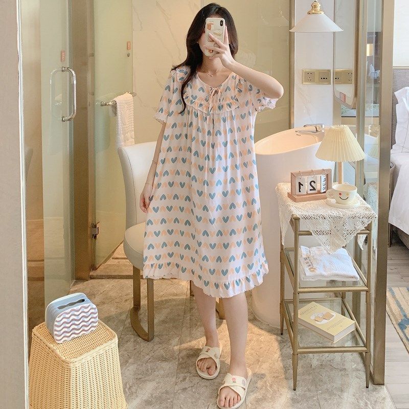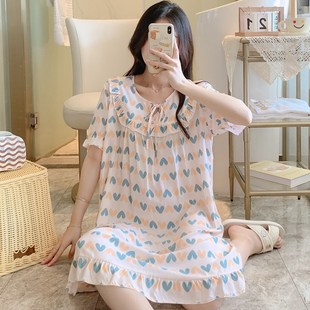 连衣裙宽松睡衣家居服 甜美A类纯棉短袖 俞兆林7A抗菌睡裙夏季 女款
