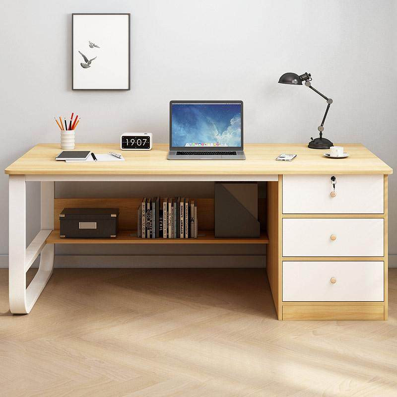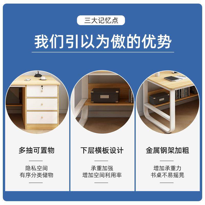 电脑桌办公桌子长方形工作台现代简约带抽屉可放主机家用mω