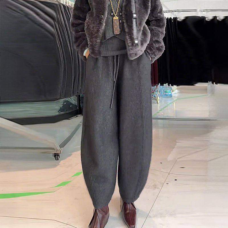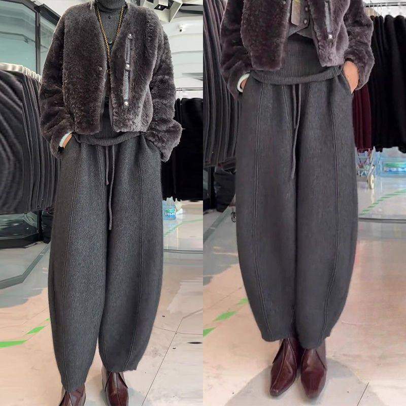 糯米裤 保暖西装 高腰垂感加厚灰色毛呢直筒阔腿裤 女秋冬2025新款 裤