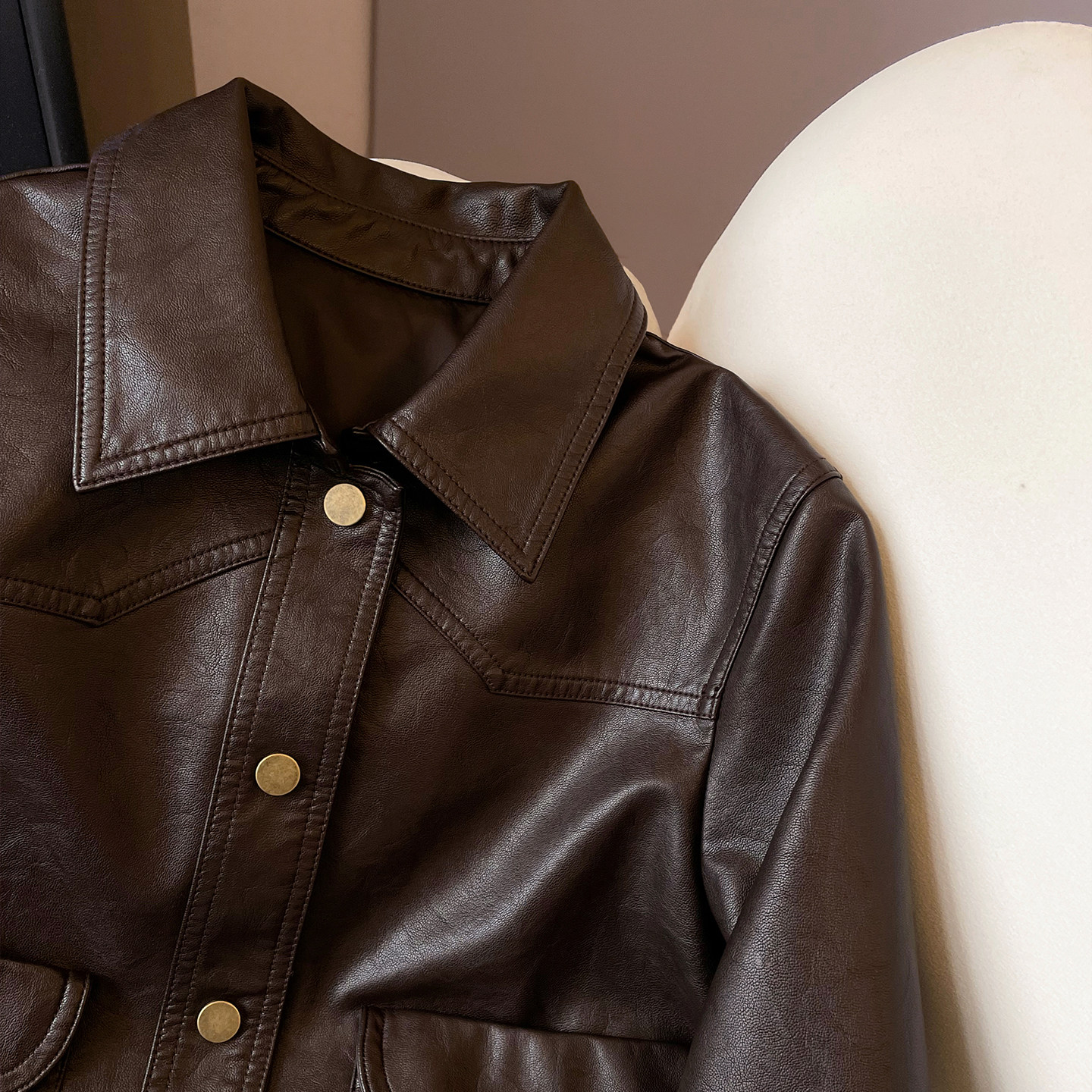 休闲小个子短款 冬季 皮夹克 美拉德风咖色皮衣外套女2026新款 小C家
